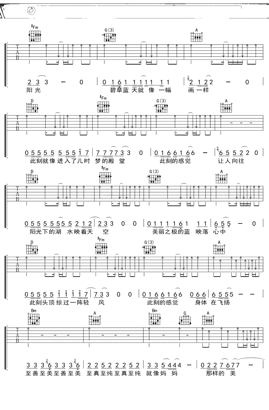 康康《至善至美》吉他谱 D调弹唱六线谱