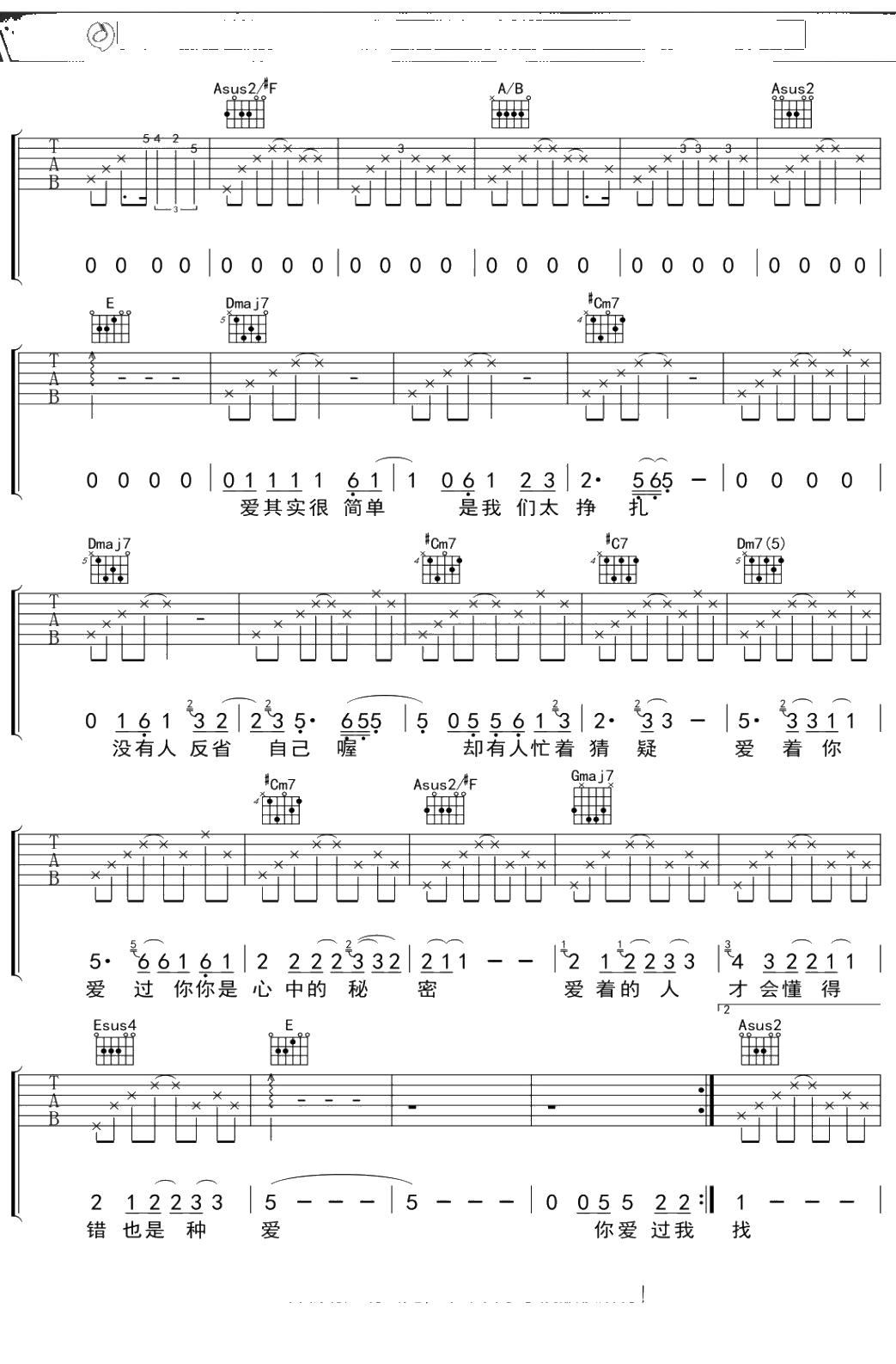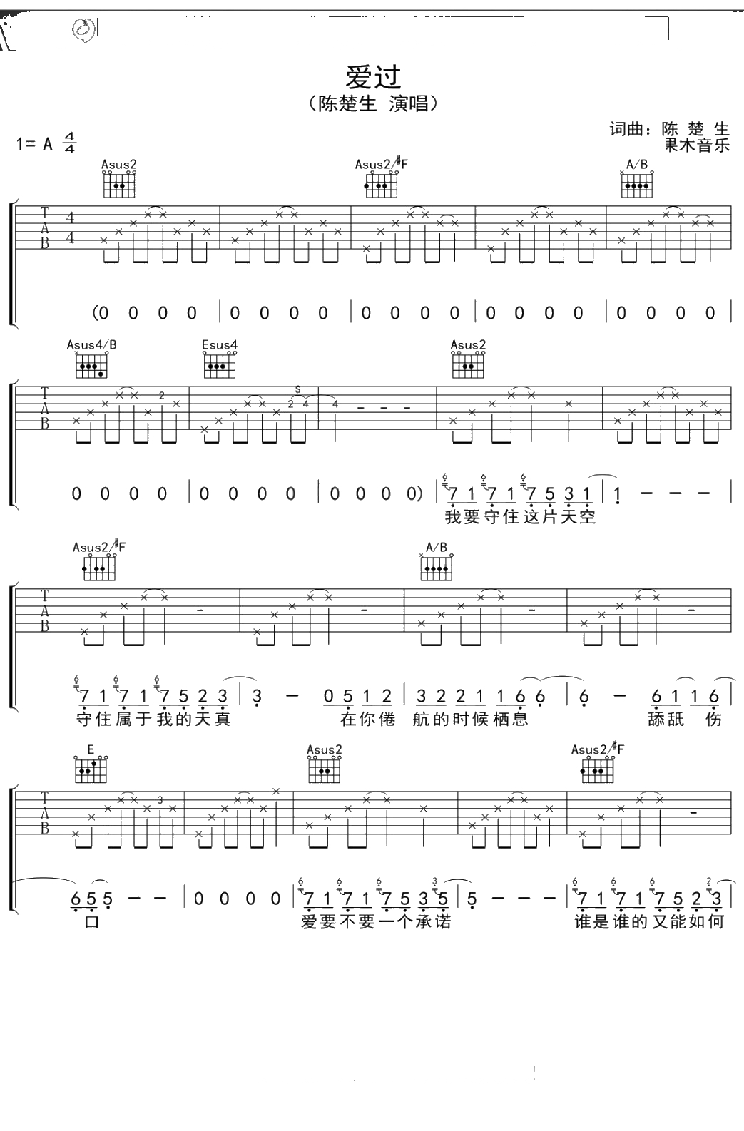 陈楚生《爱过》吉他谱 A调弹唱六线谱