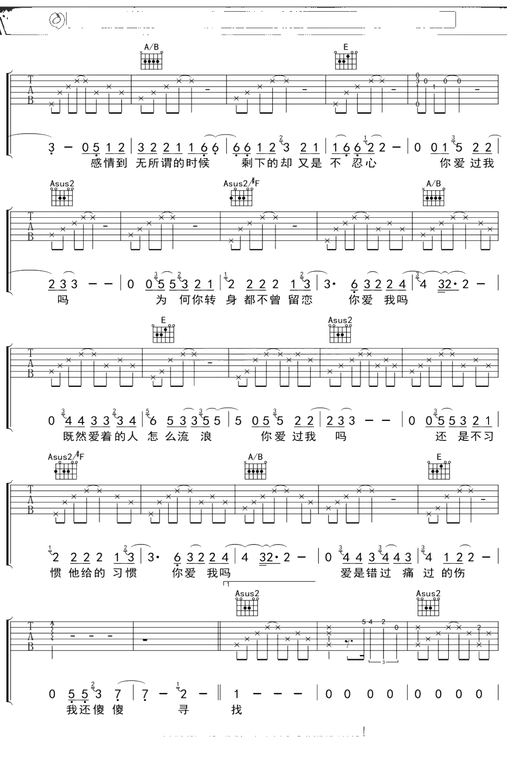 陈楚生《爱过》吉他谱 A调弹唱六线谱吉他谱