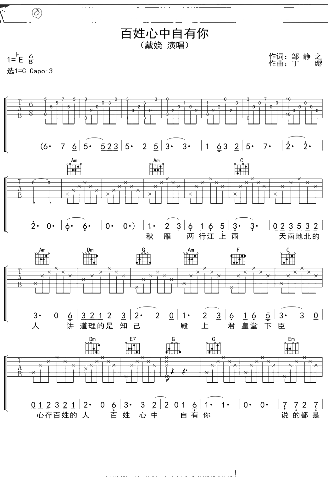 戴娆《百姓心中自有你》吉他谱 C调弹唱六线谱吉他谱