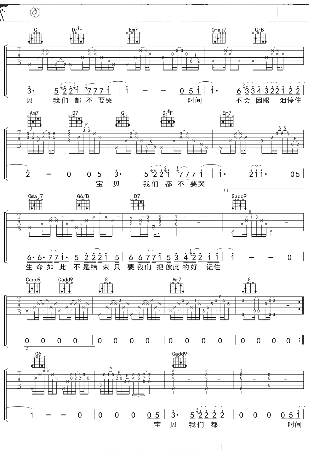 范玮琪《宝贝我们不哭》吉他谱 C调弹唱六线谱吉他谱