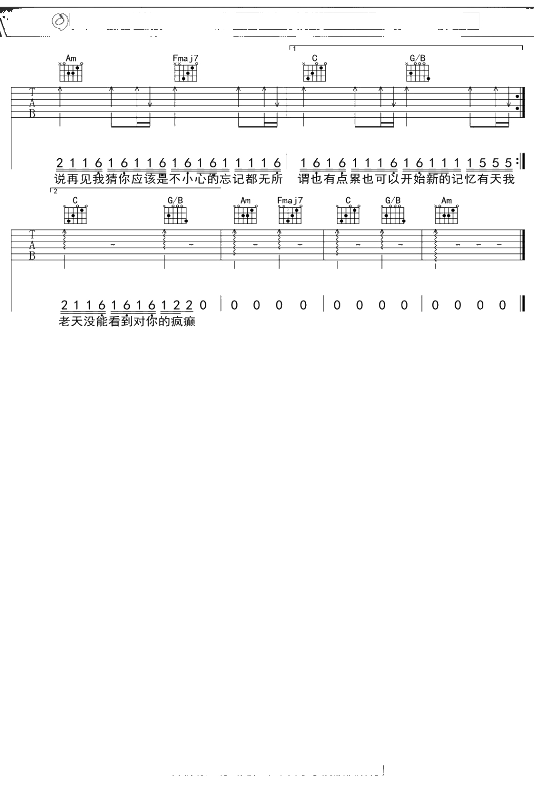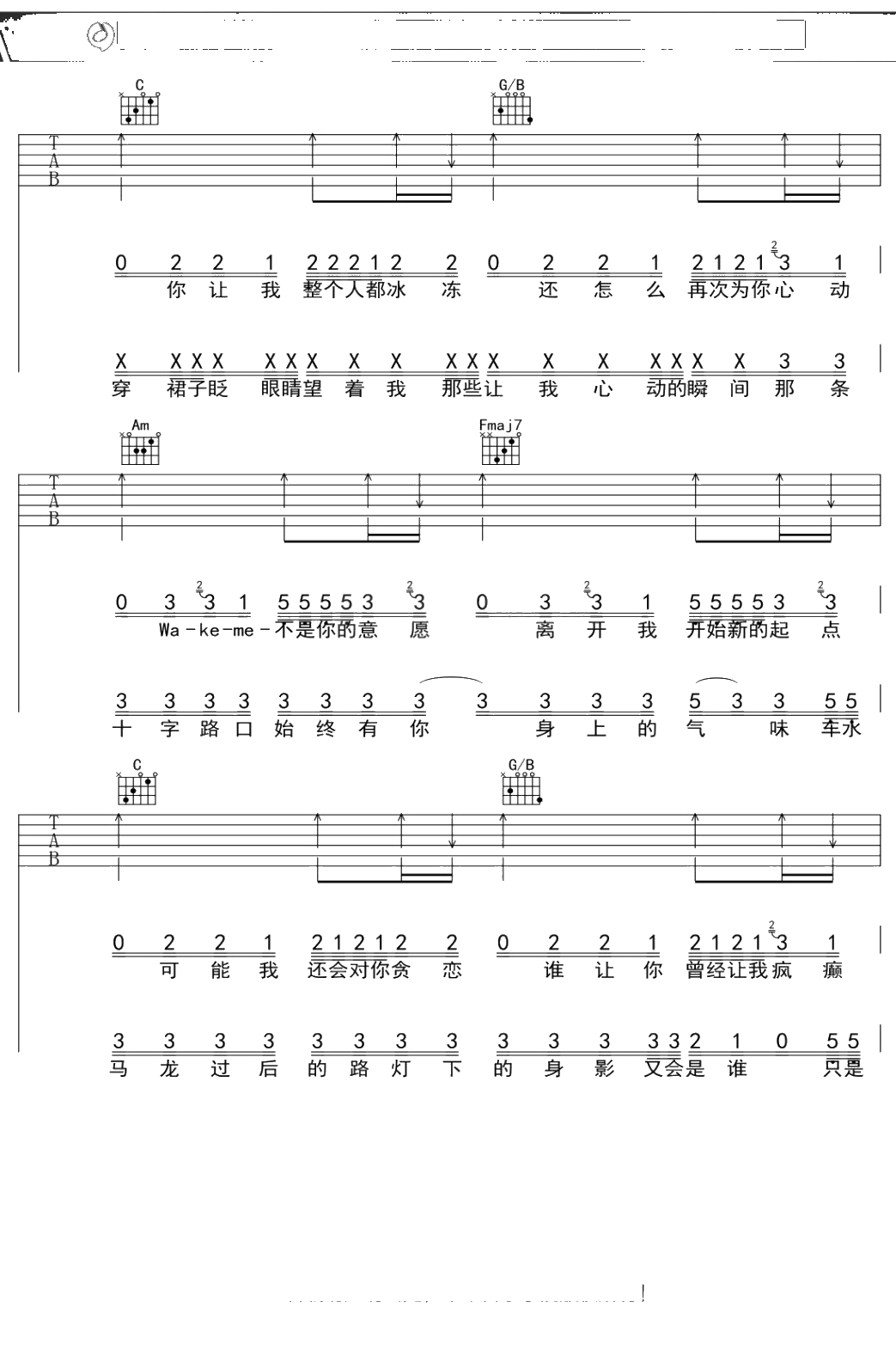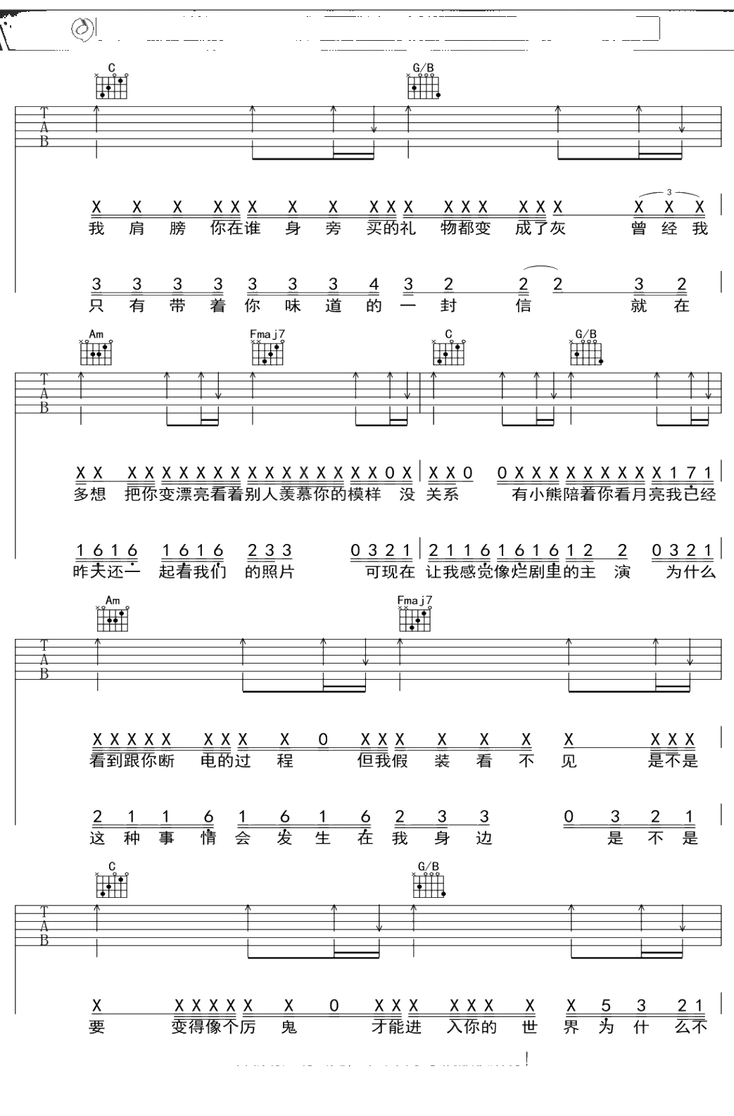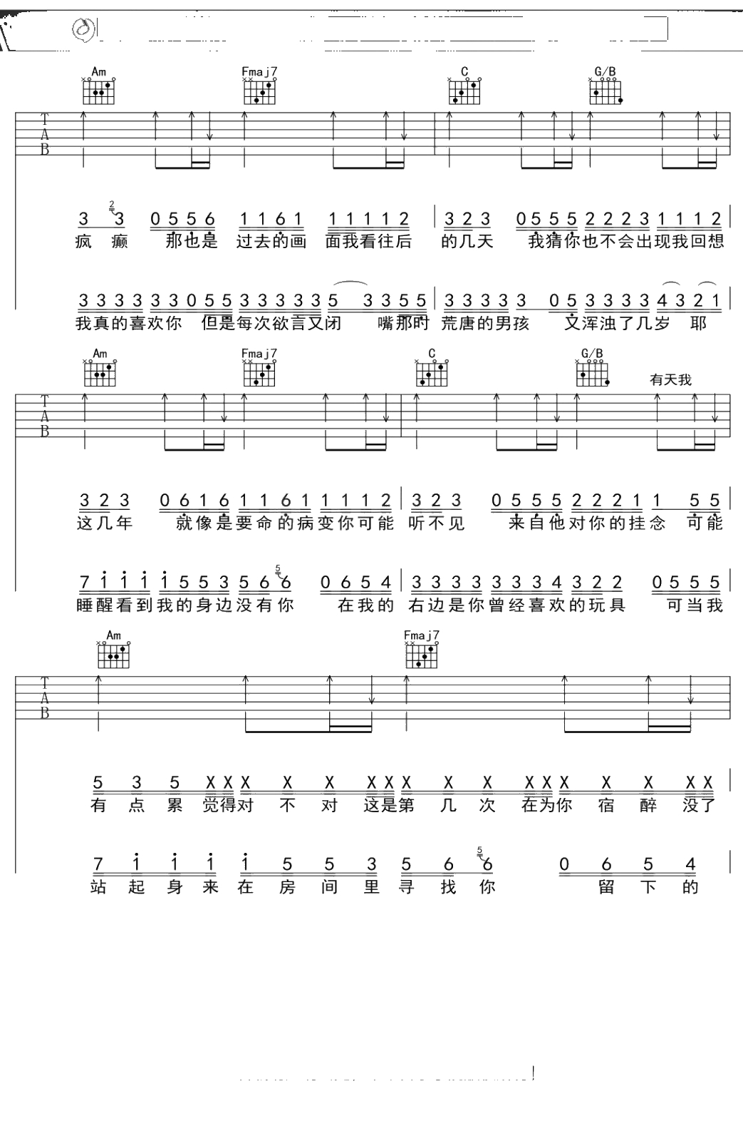 《病变》吉他谱 男生版 C调弹唱六线谱吉他谱