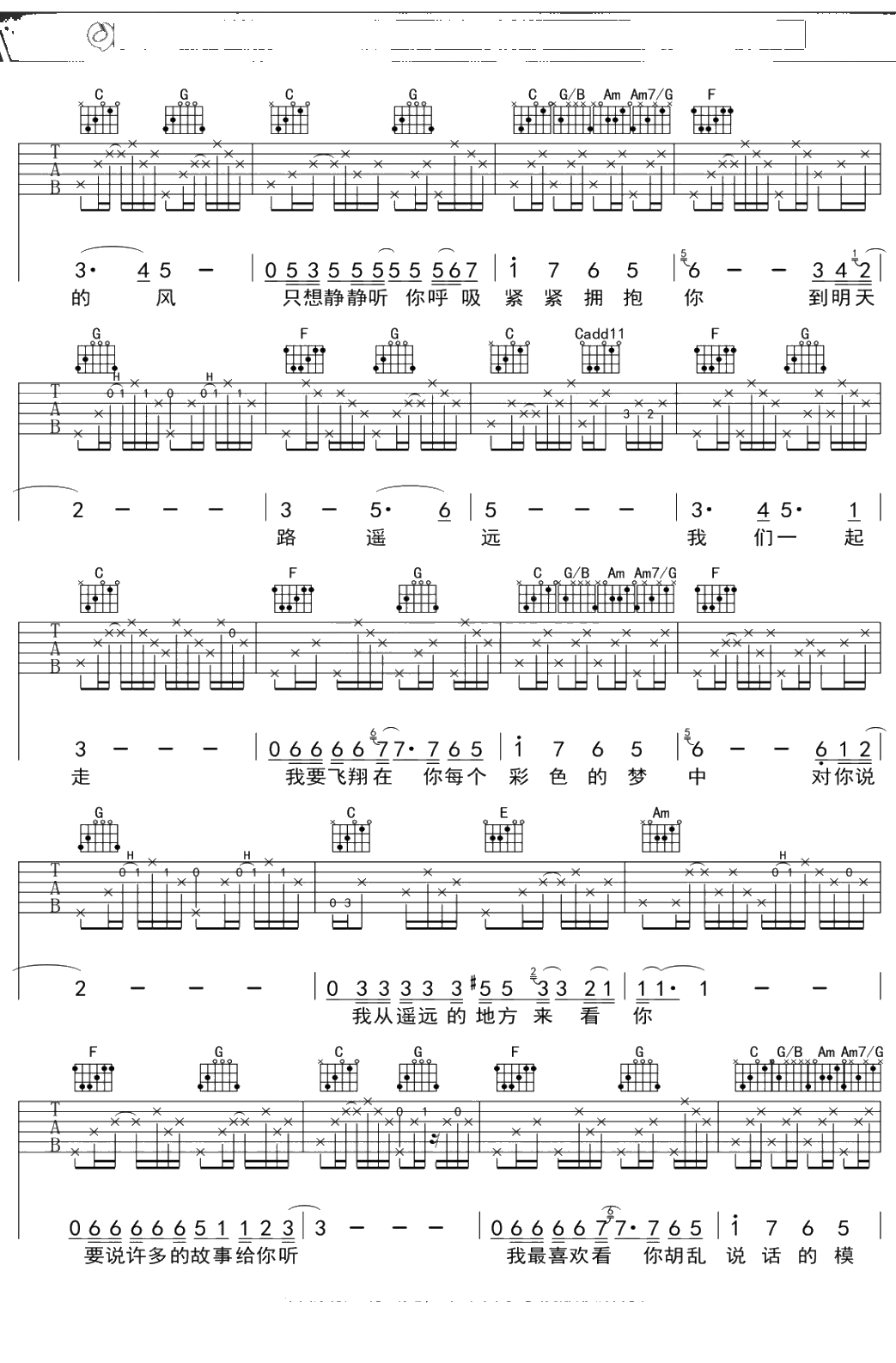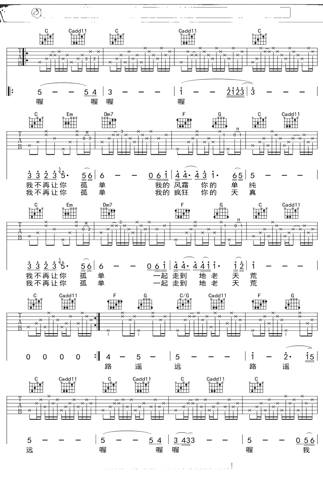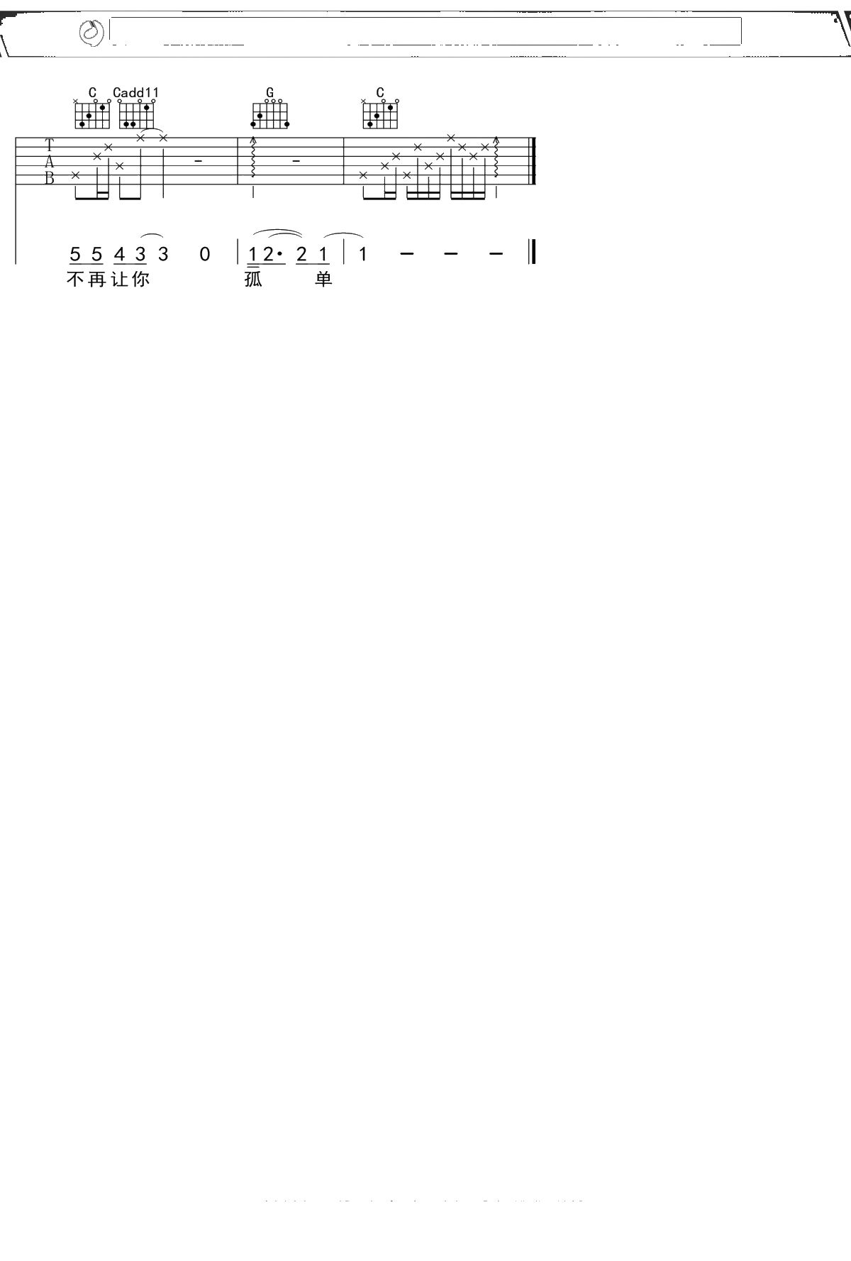 陈升《不再让你孤单》吉他谱 C调弹唱六线谱吉他谱