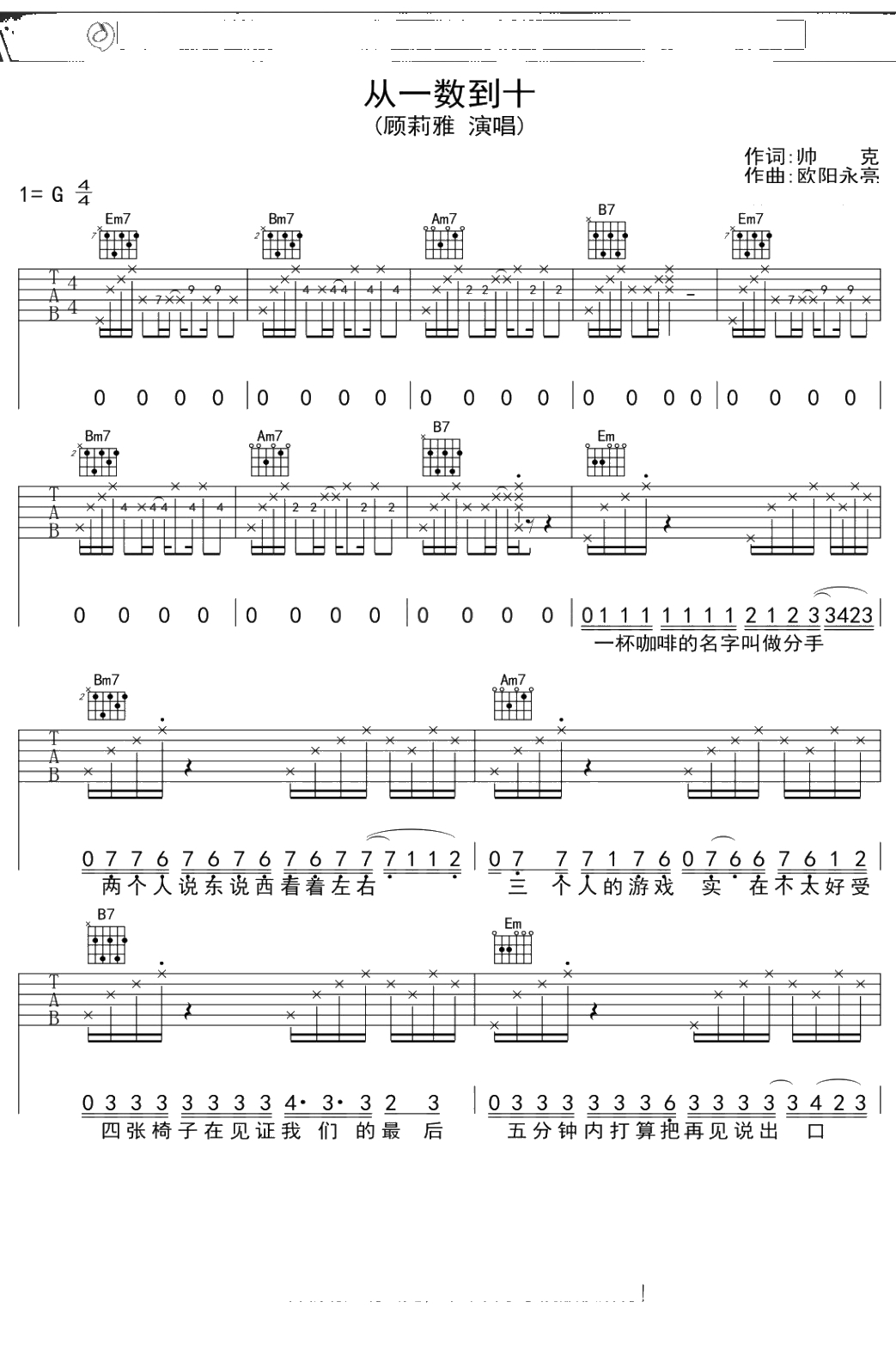 顾莉雅《从一数到十》吉他谱 G调弹唱六线谱吉他谱