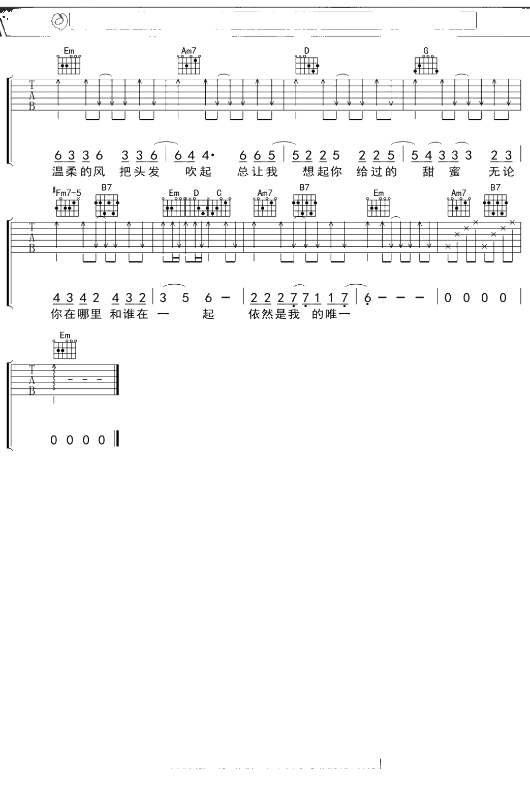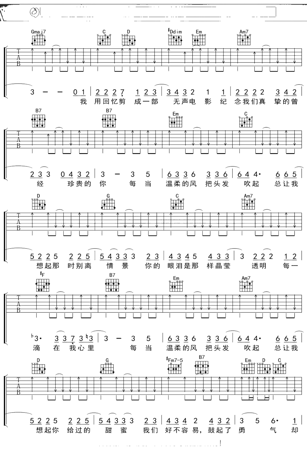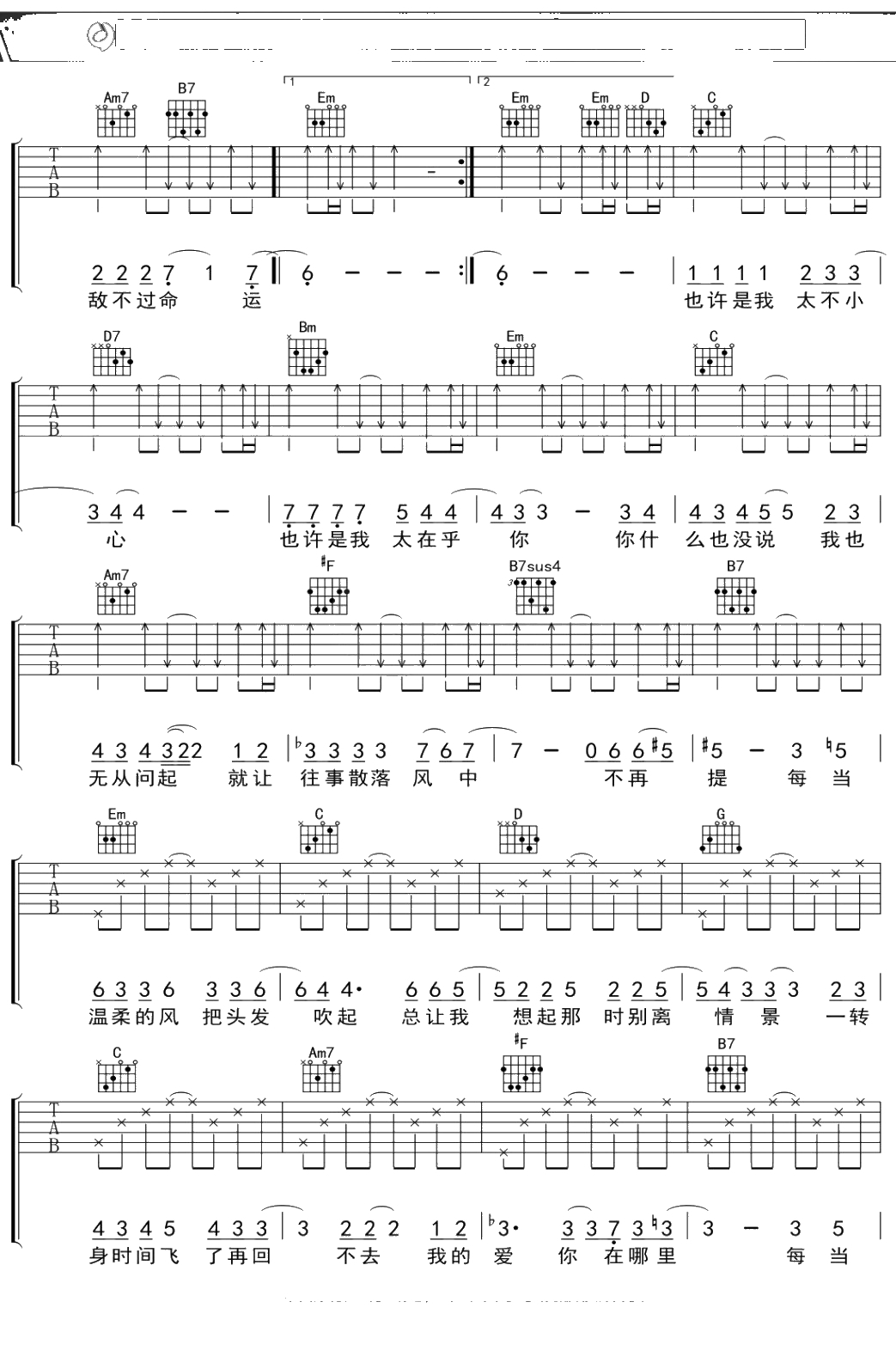 陈楚生《风起时想你》吉他谱 G调弹唱六线谱吉他谱