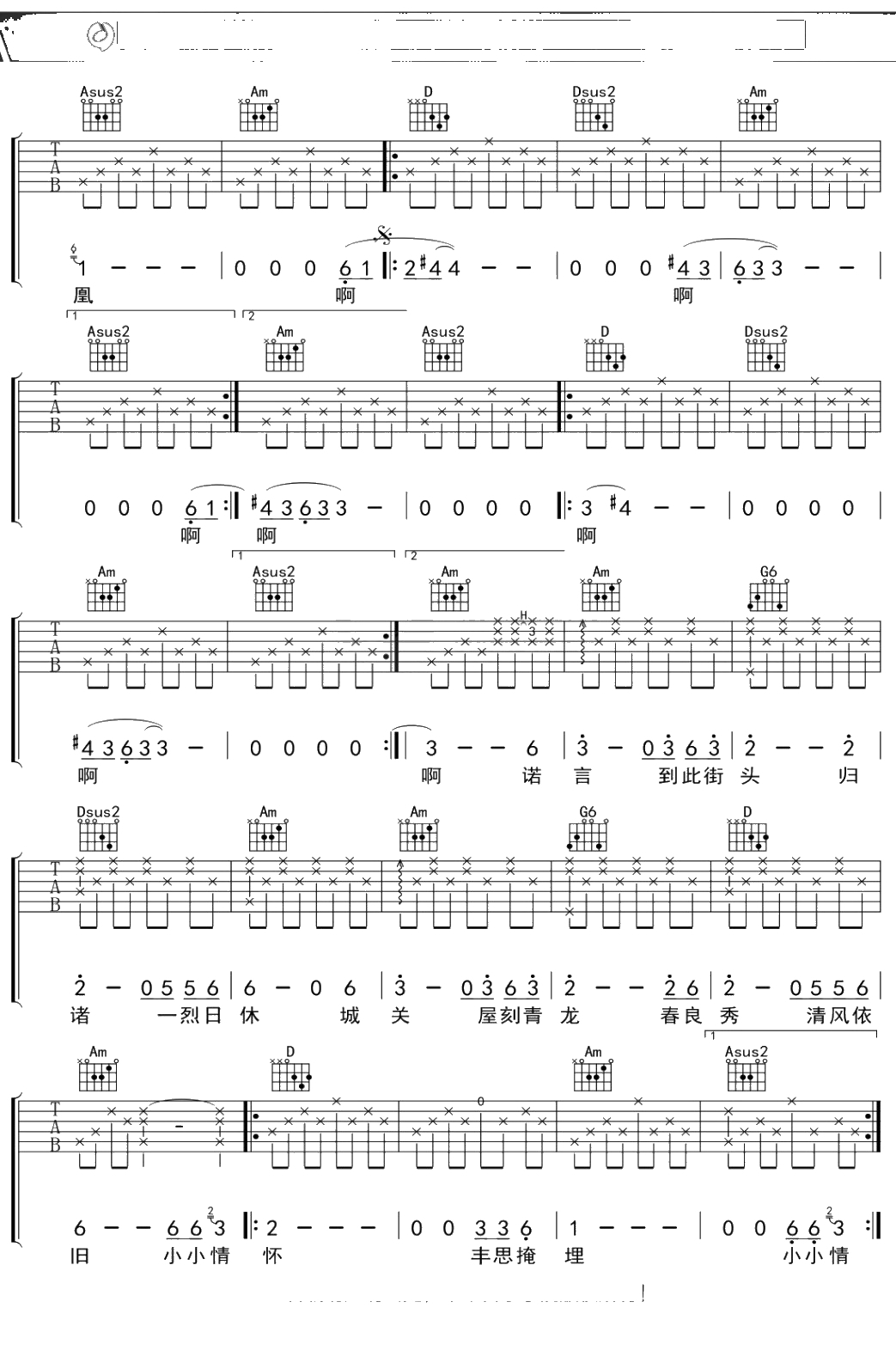 大乔小乔《求凤凰》吉他谱 C调弹唱六线谱吉他谱