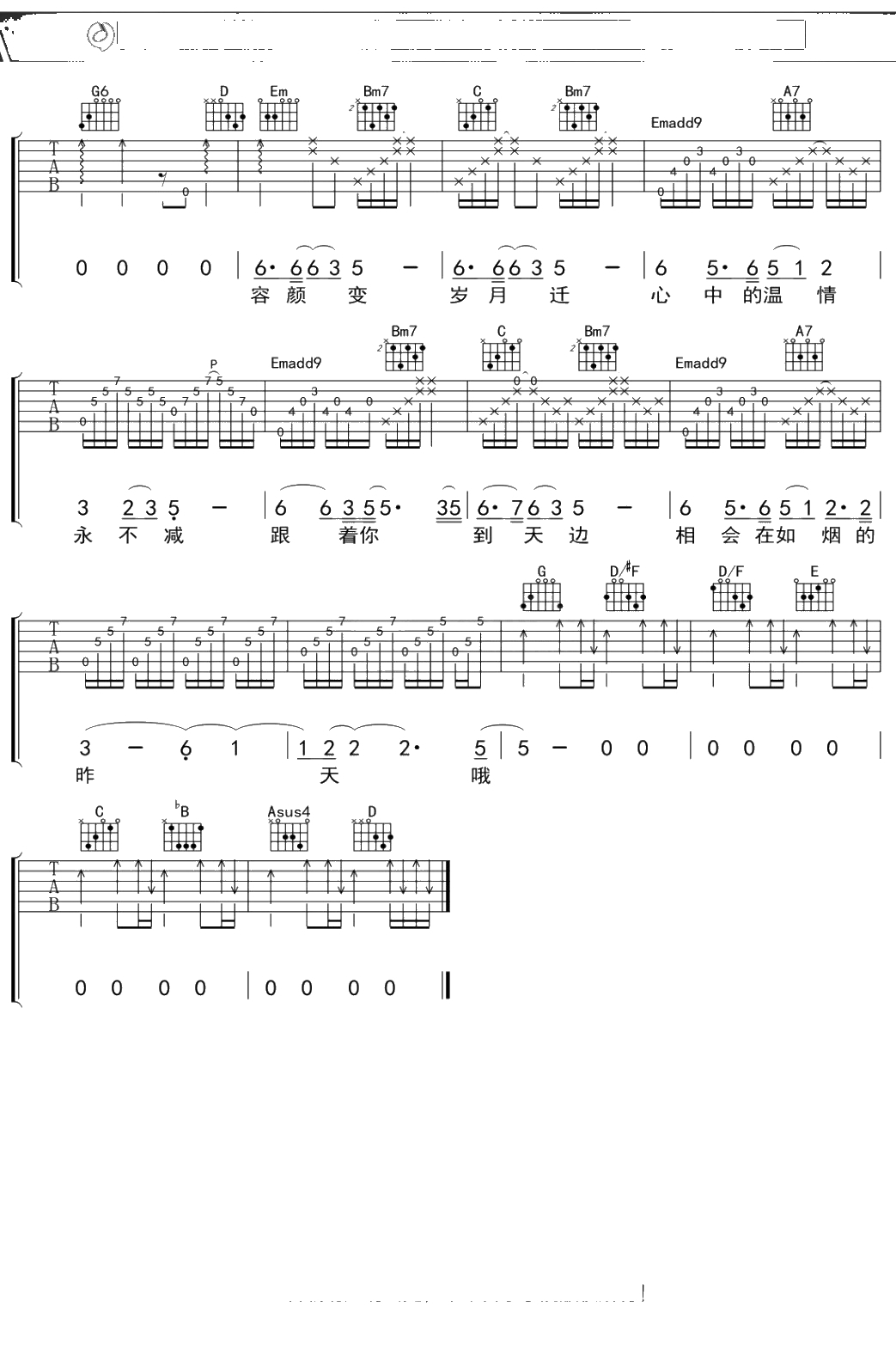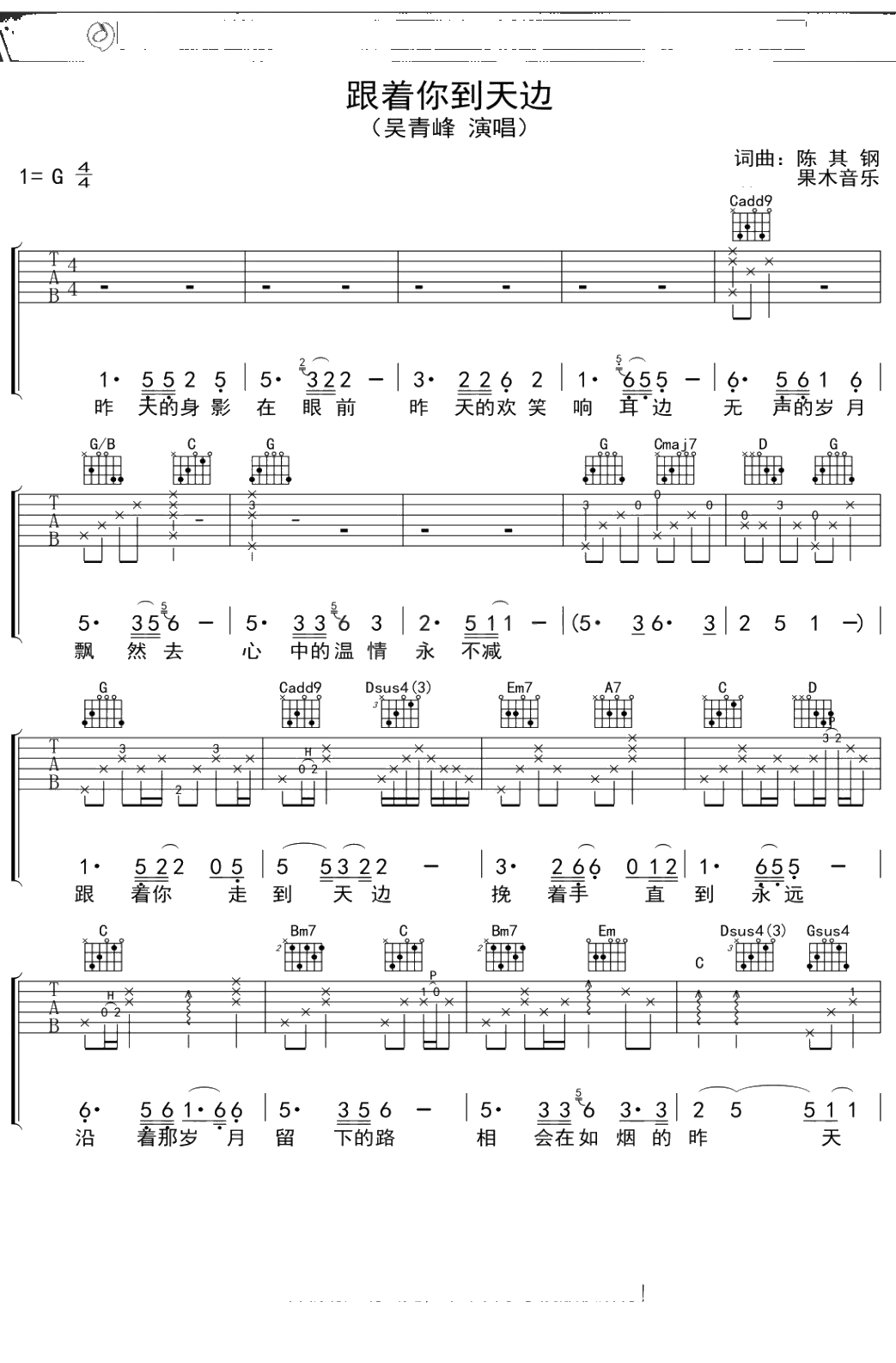 吴青峰《跟着你到海边》吉他谱 G调弹唱六线谱吉他谱