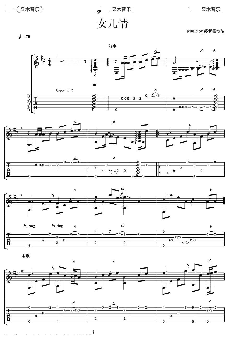 西游记插曲《女儿情》指弹吉他谱