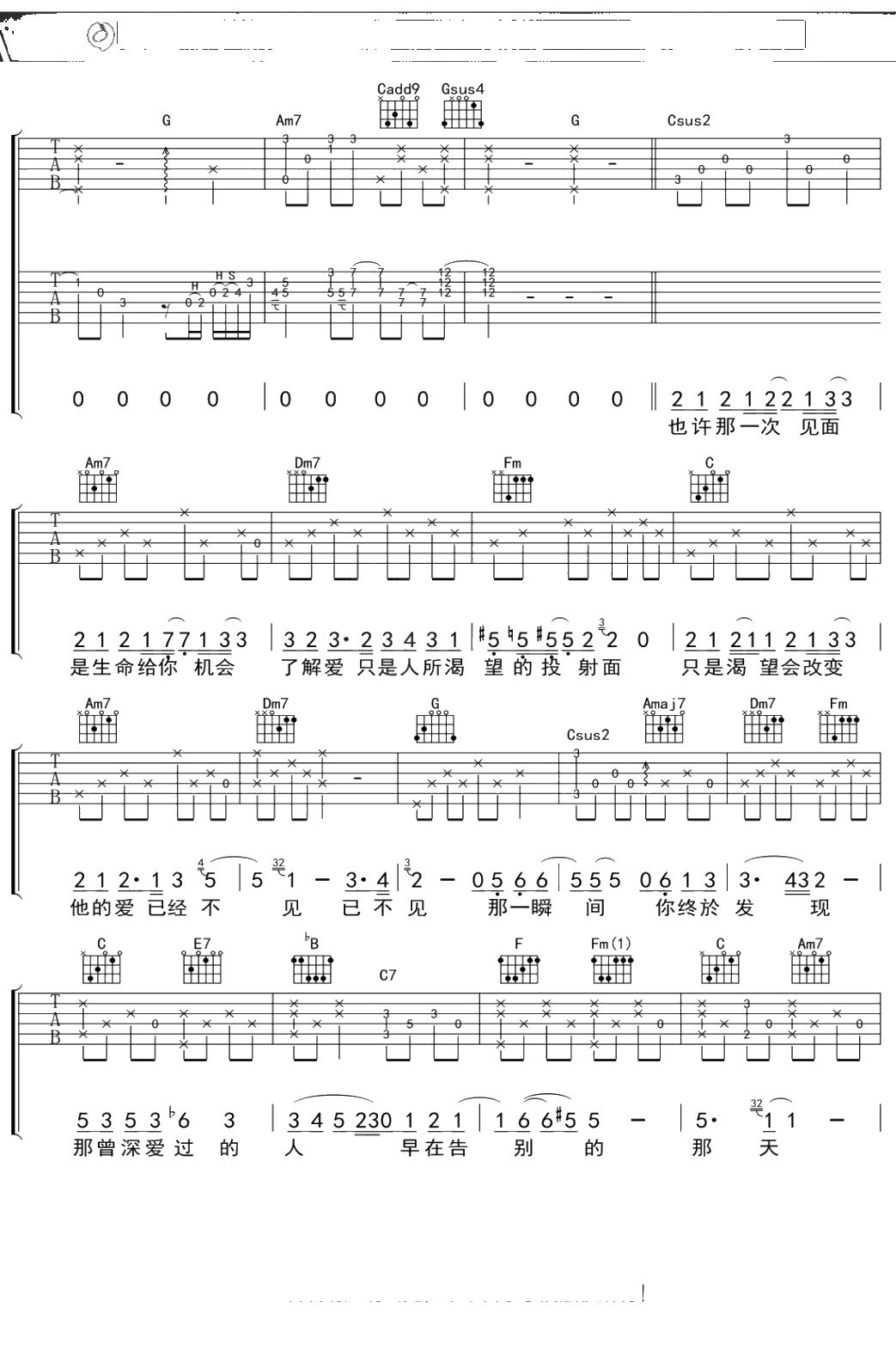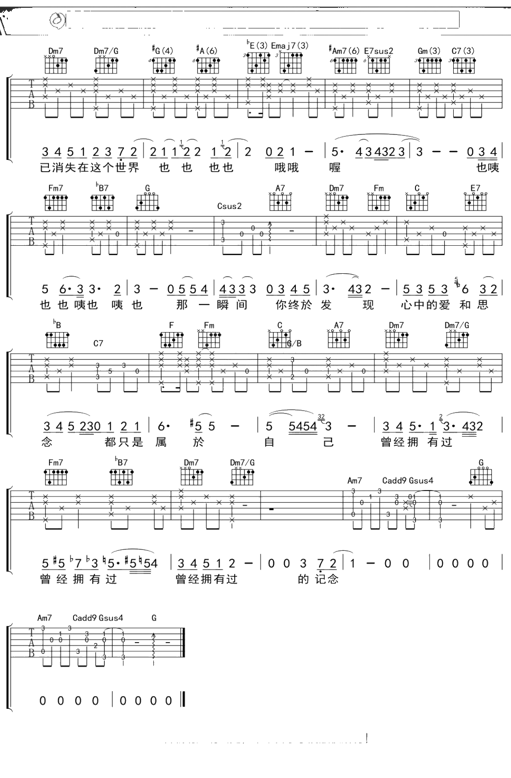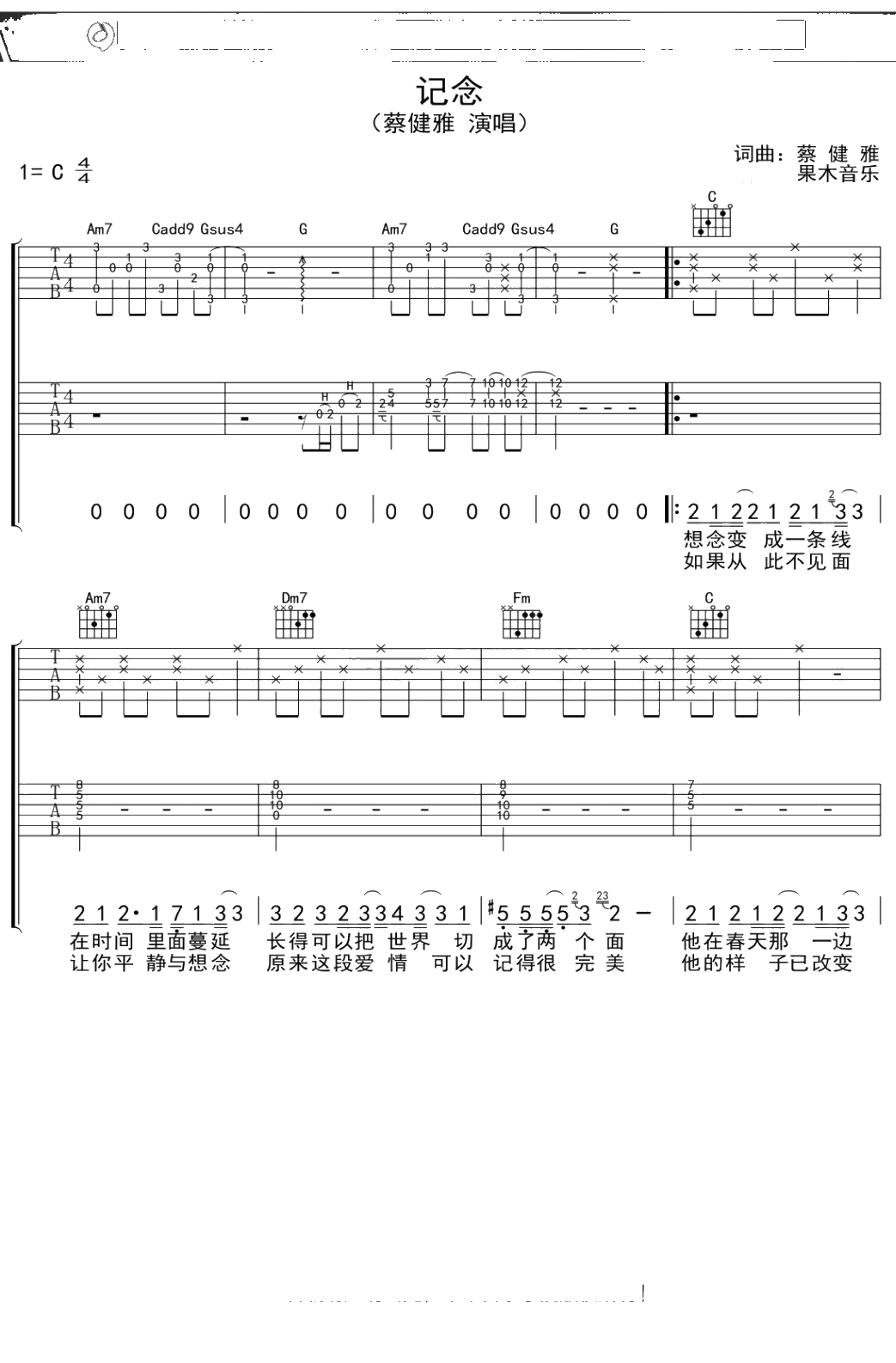 蔡健雅《纪念》吉他谱 C调弹唱六线谱