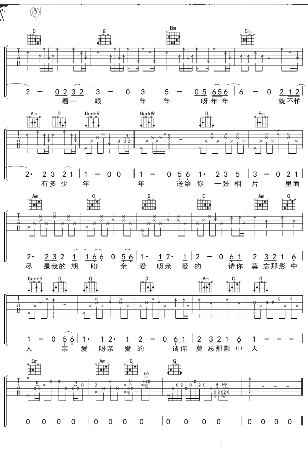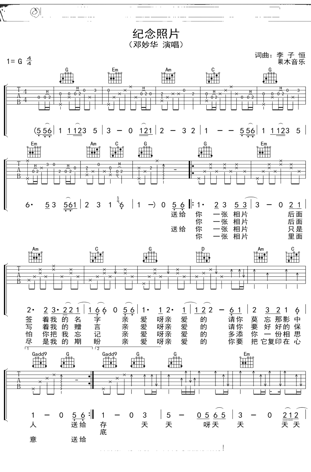 邓妙华《纪念照片》吉他谱 G调弹唱六线谱吉他谱