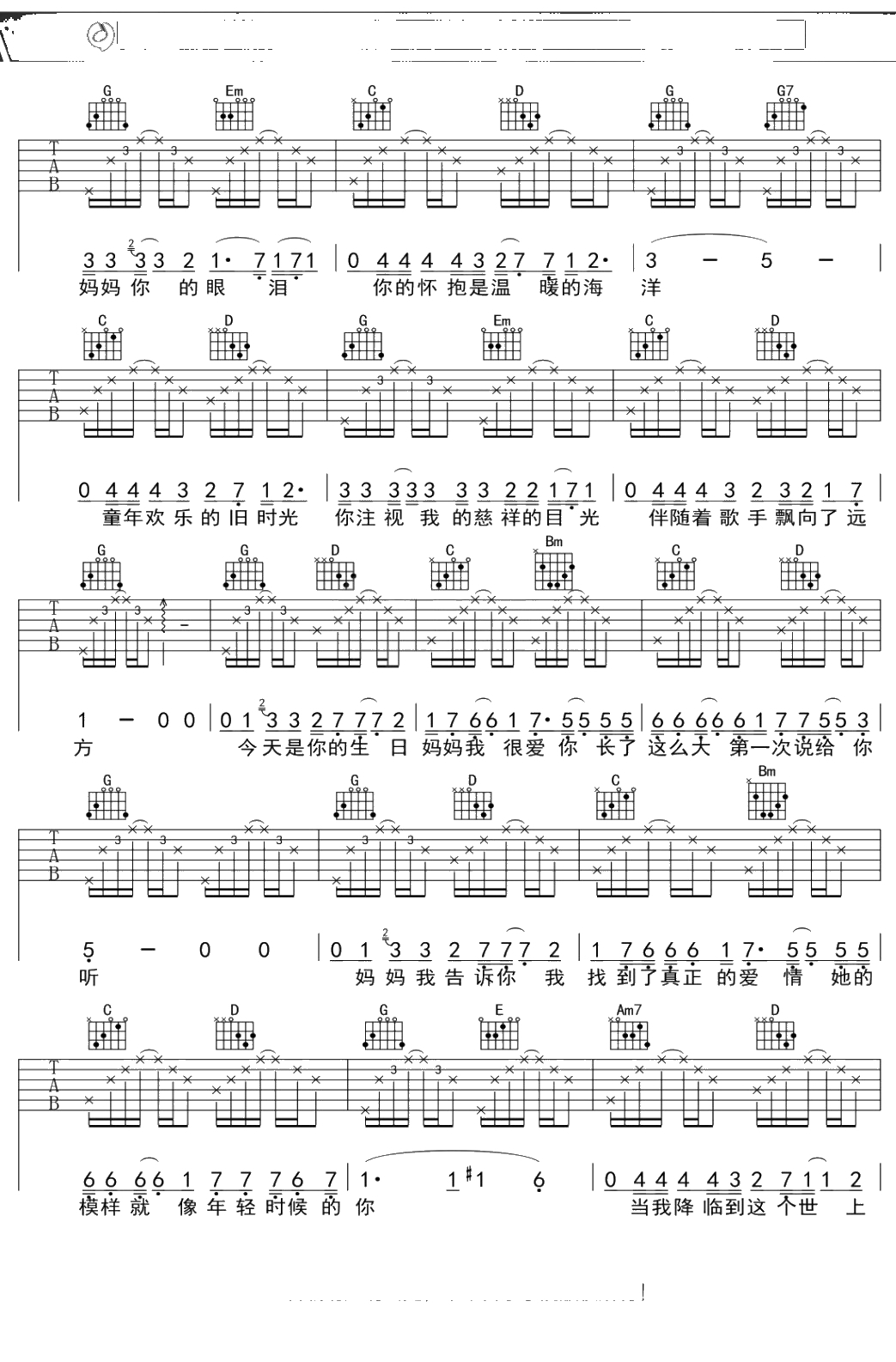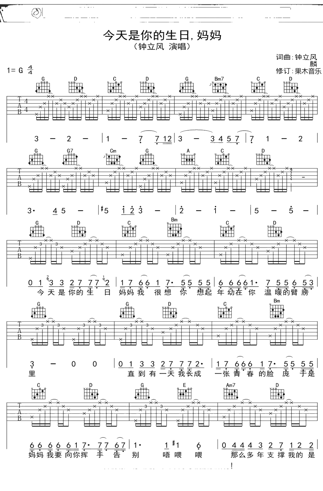 钟立风《今天是你的生日,妈妈》吉他谱 G调弹唱六线谱吉他谱