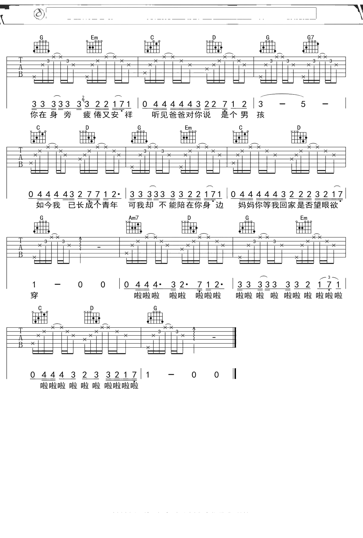 钟立风《今天是你的生日,妈妈》吉他谱 G调弹唱六线谱