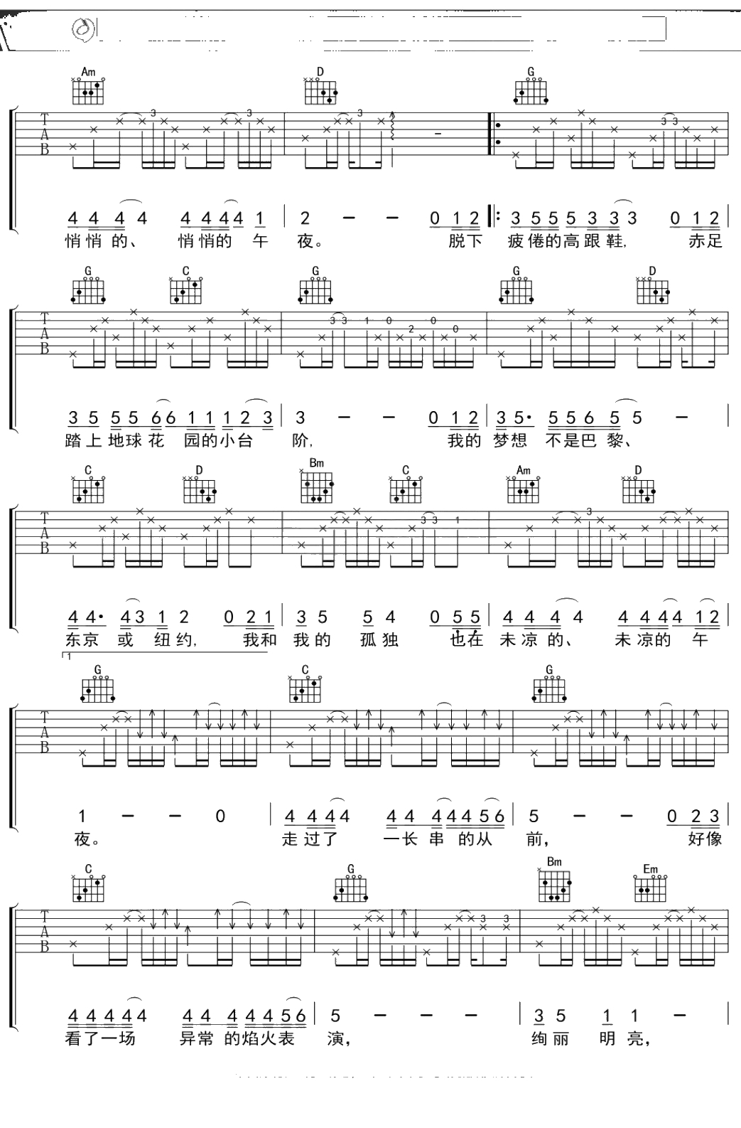 好妹妹乐队《九月的高跟鞋》吉他谱 G调弹唱六线谱