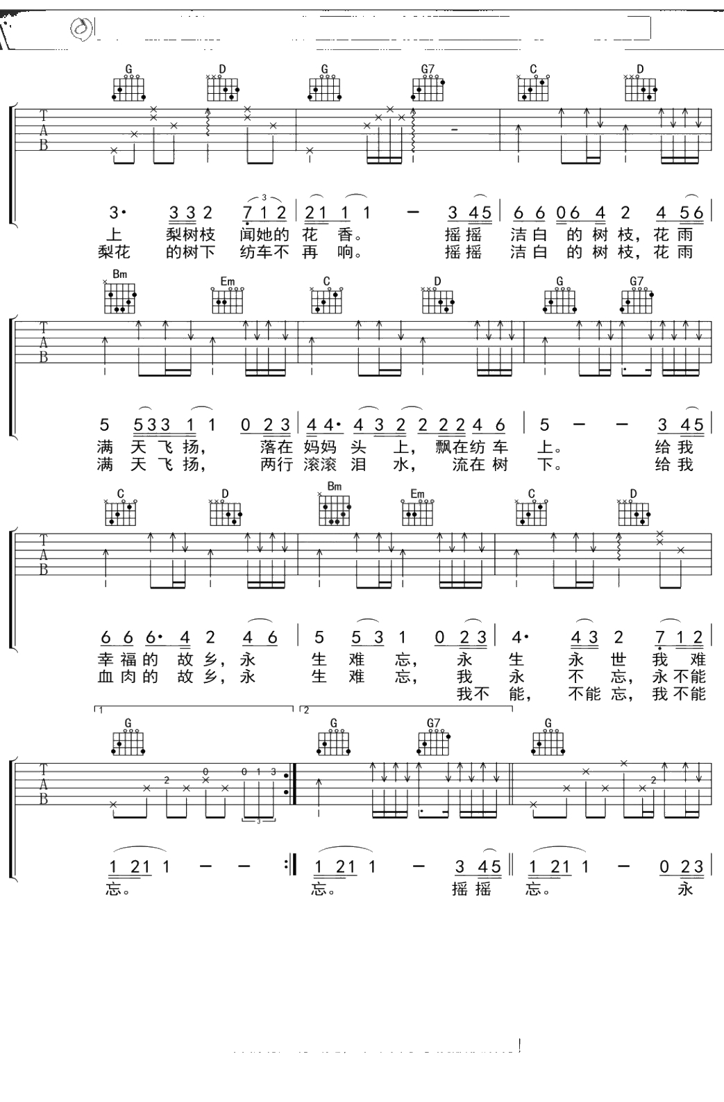 韩红《梨花开又放》吉他谱 G调弹唱六线谱吉他谱