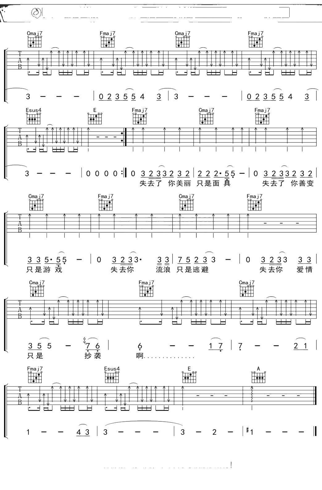 陈绮贞《灵感》吉他谱 C调弹唱六线谱吉他谱