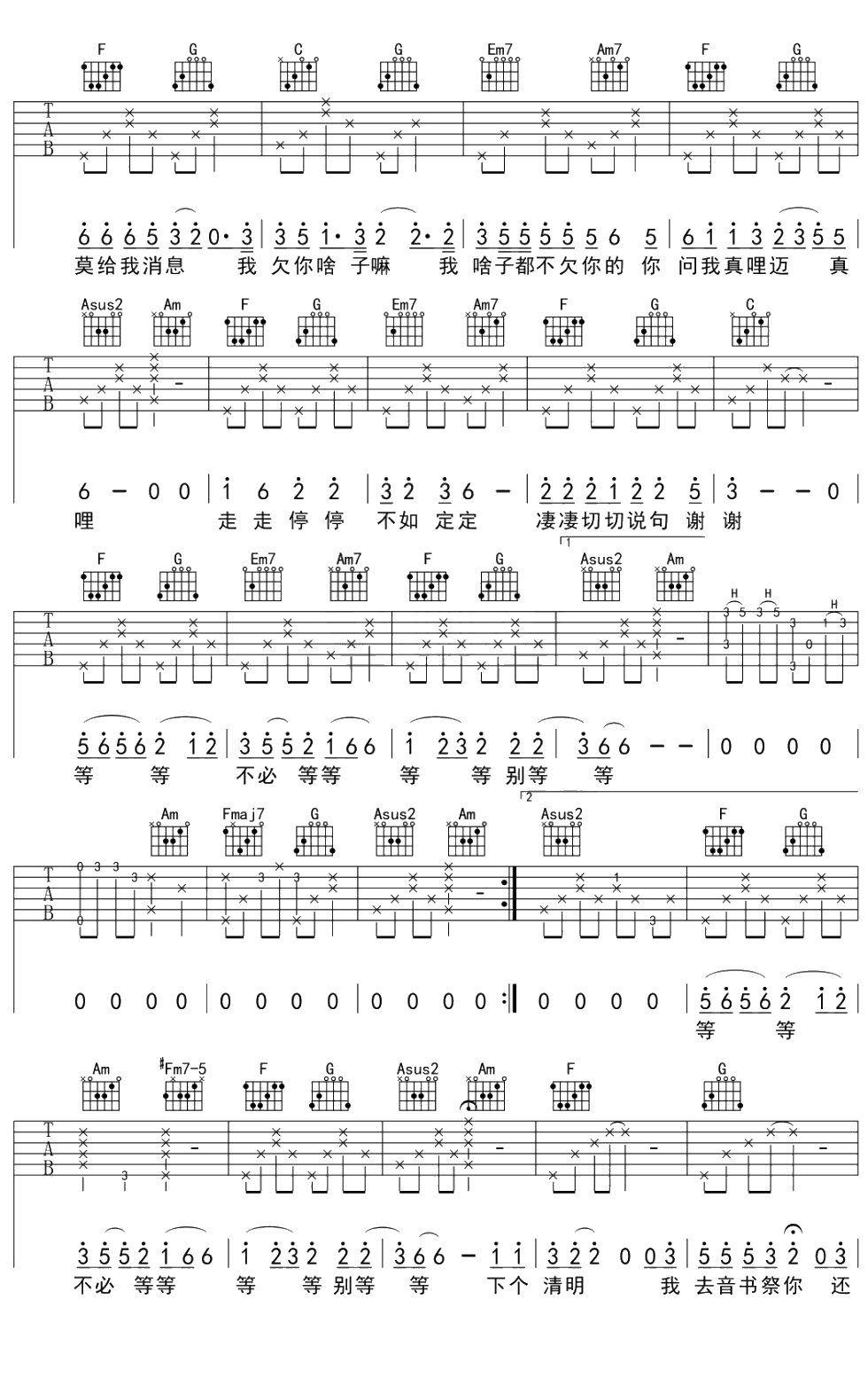 任素汐《胡广生》吉他谱 C调弹唱六线谱吉他谱