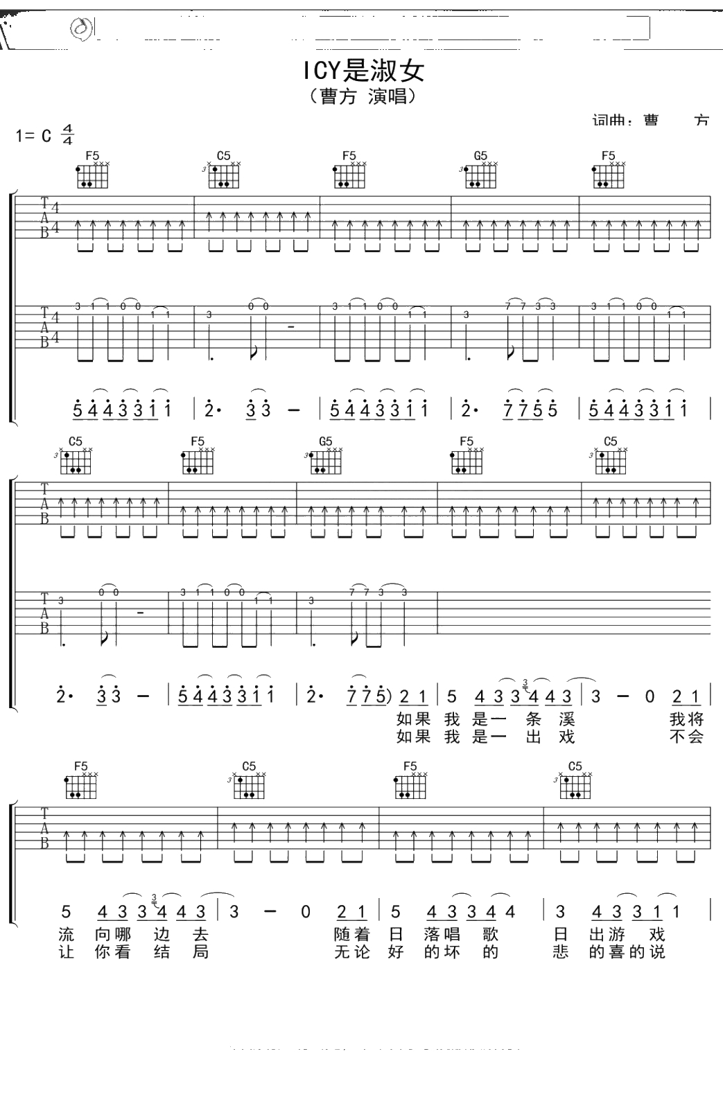 曹方《ICY是淑女》吉他谱 弹唱六线谱