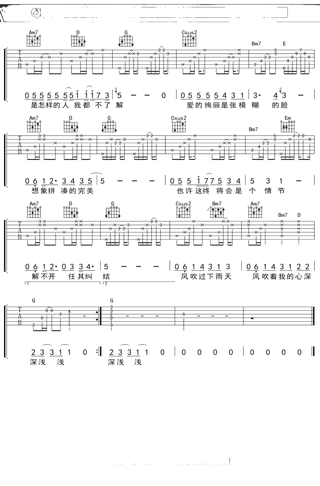 曹方《风吹过的下雨天》吉他谱 弹唱六线谱