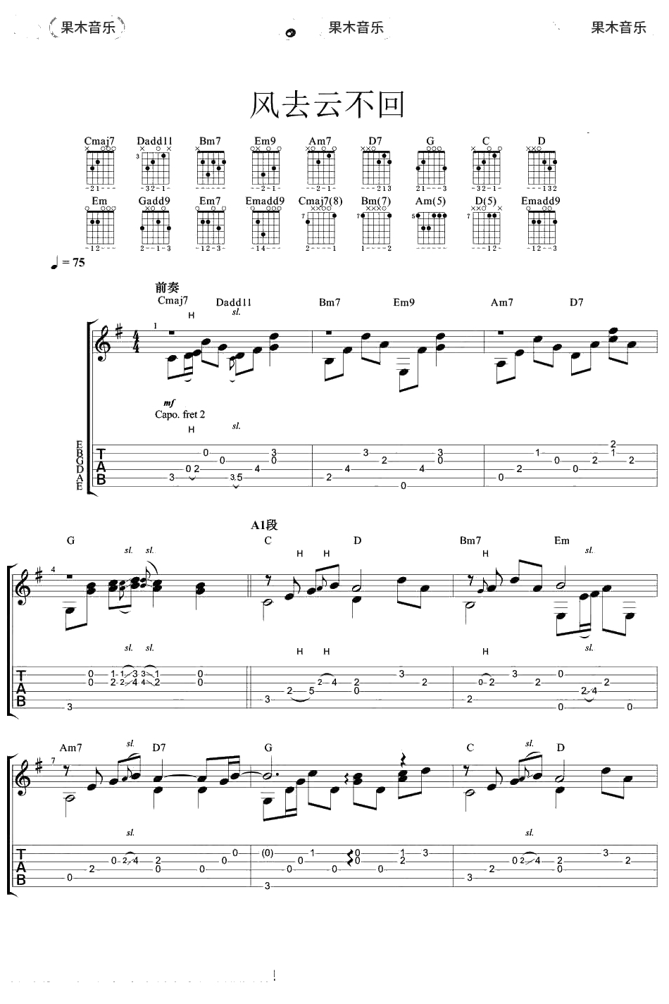 战狼2主题曲《风去云不回》指弹谱 吉他独奏吉他谱