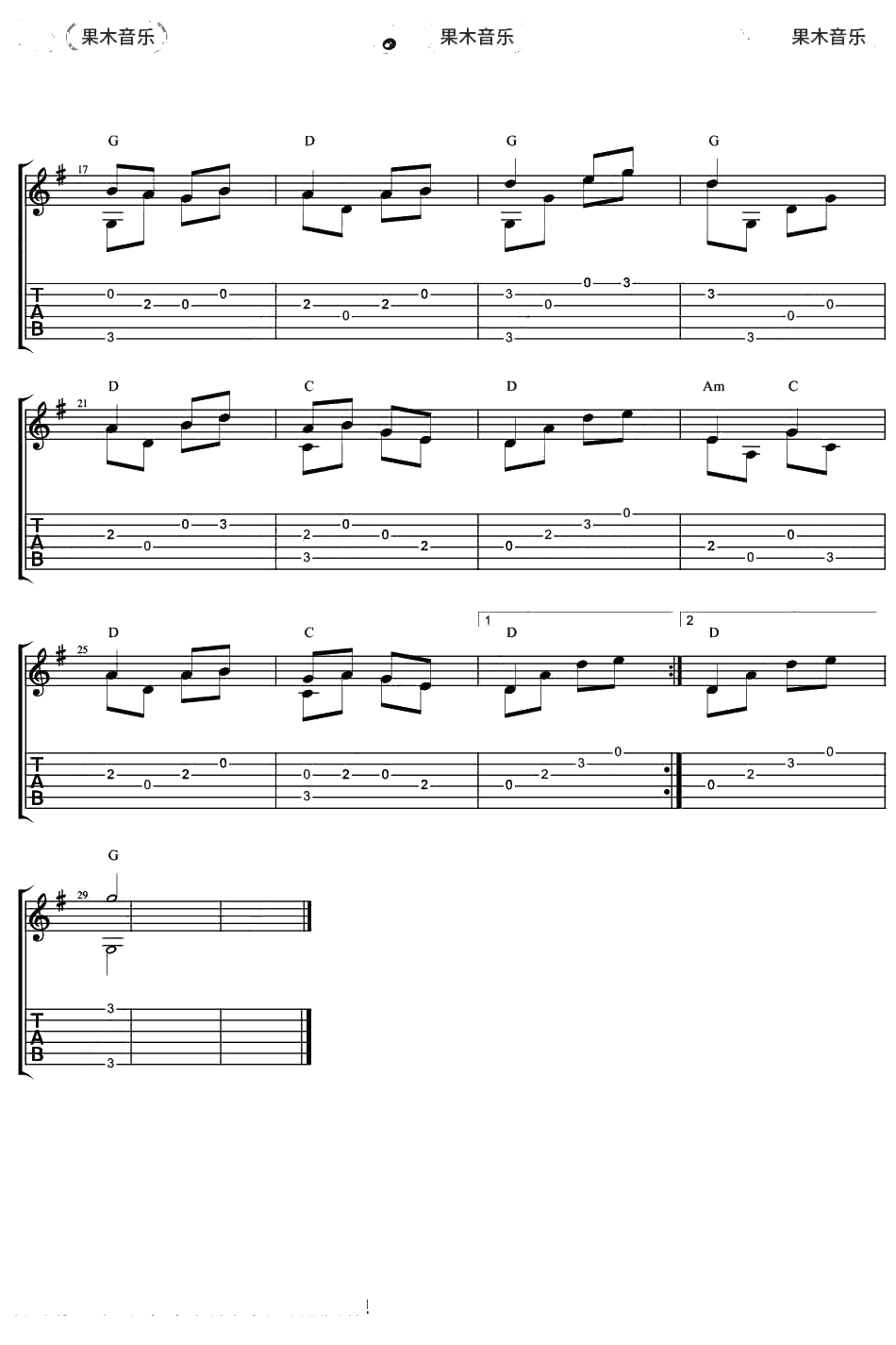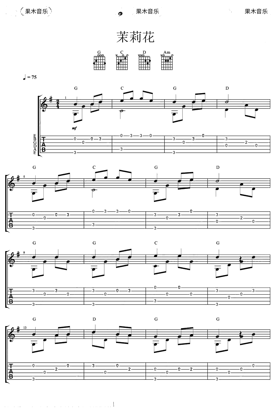 儿歌《茉莉花》指弹谱 吉他独奏吉他谱