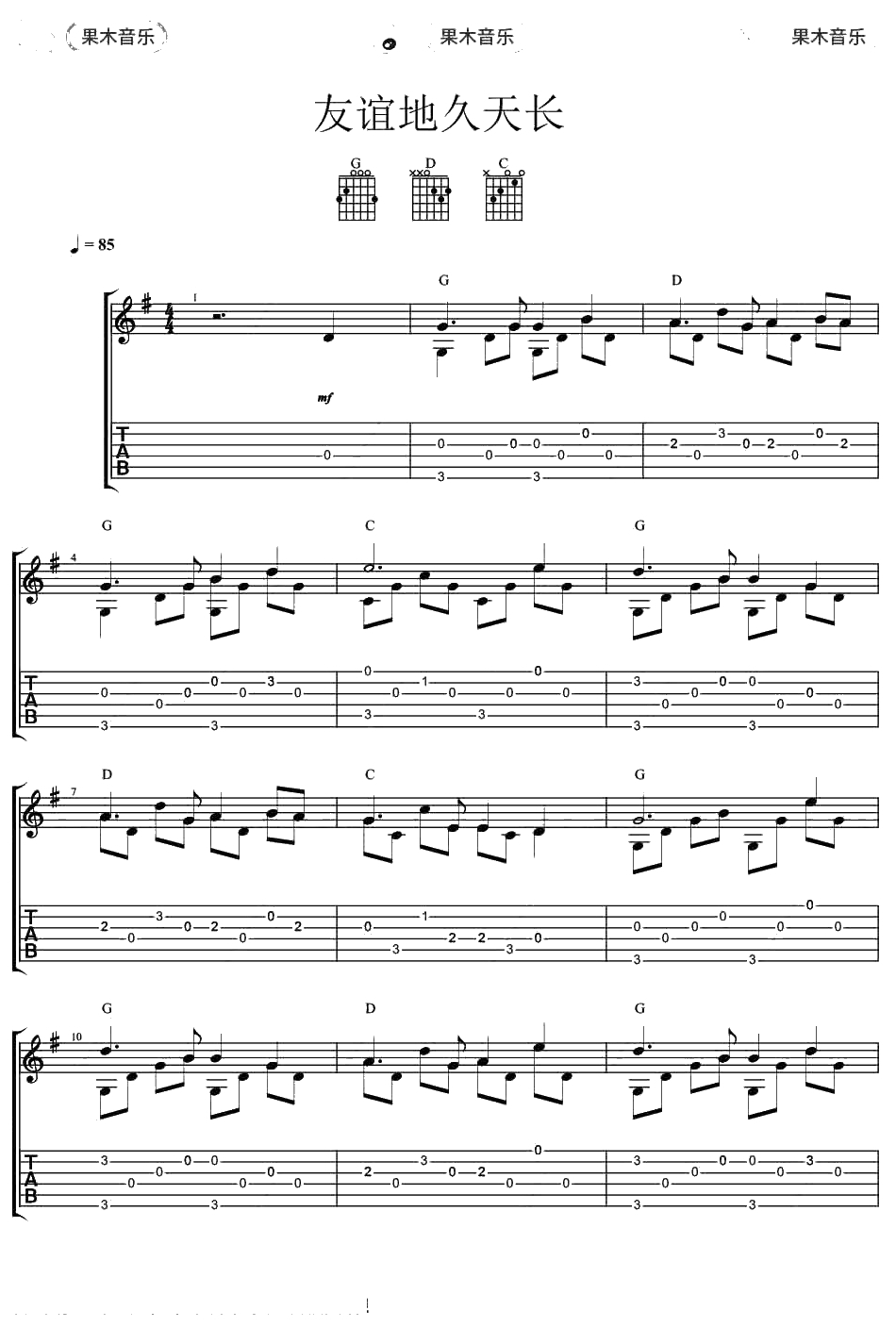 世界名曲《友谊地久天长》指弹谱 吉他独奏
