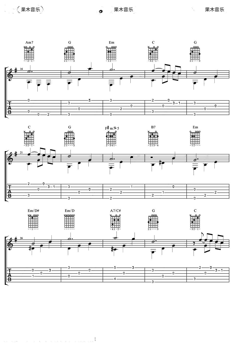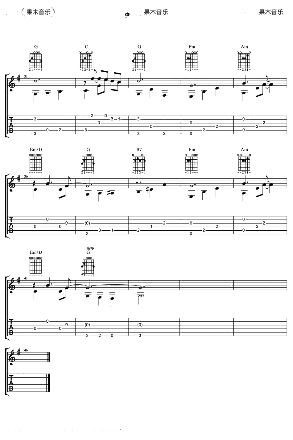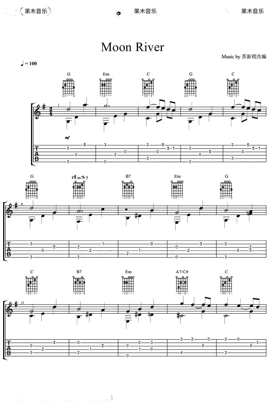 名曲《moon river》指弹谱 吉他独奏吉他谱