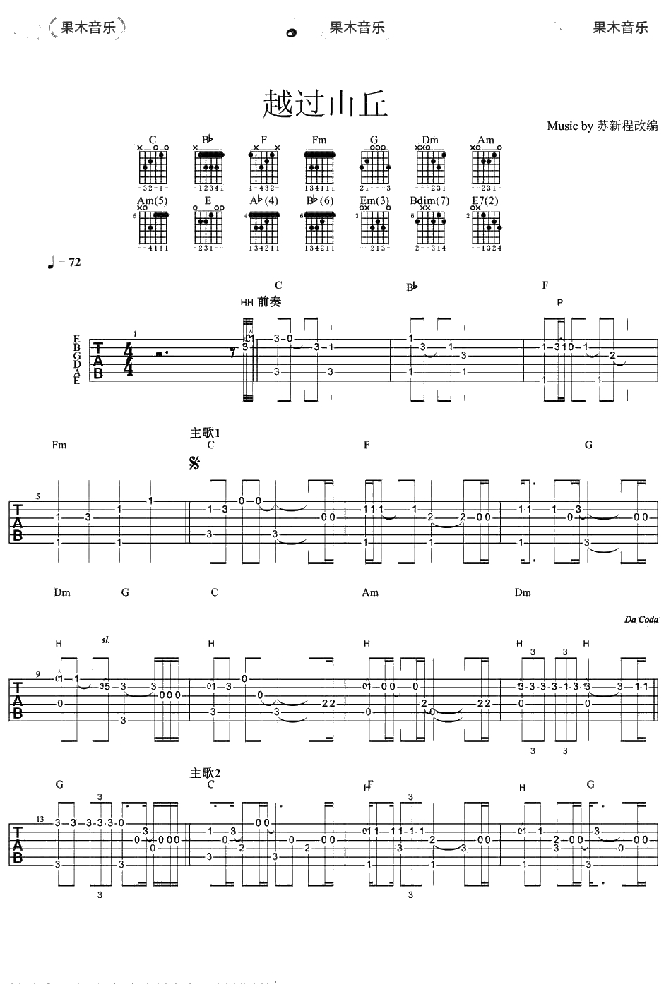李宗盛《越过山丘》指弹谱 吉他独奏