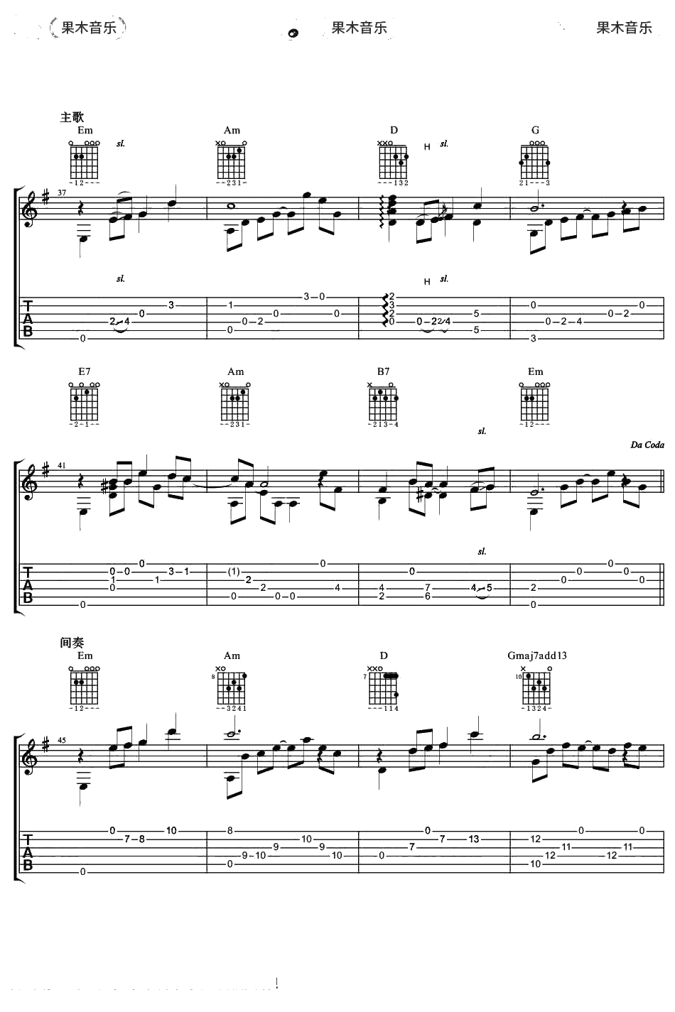 李健《贝加尔湖畔》指弹谱 吉他独奏吉他谱