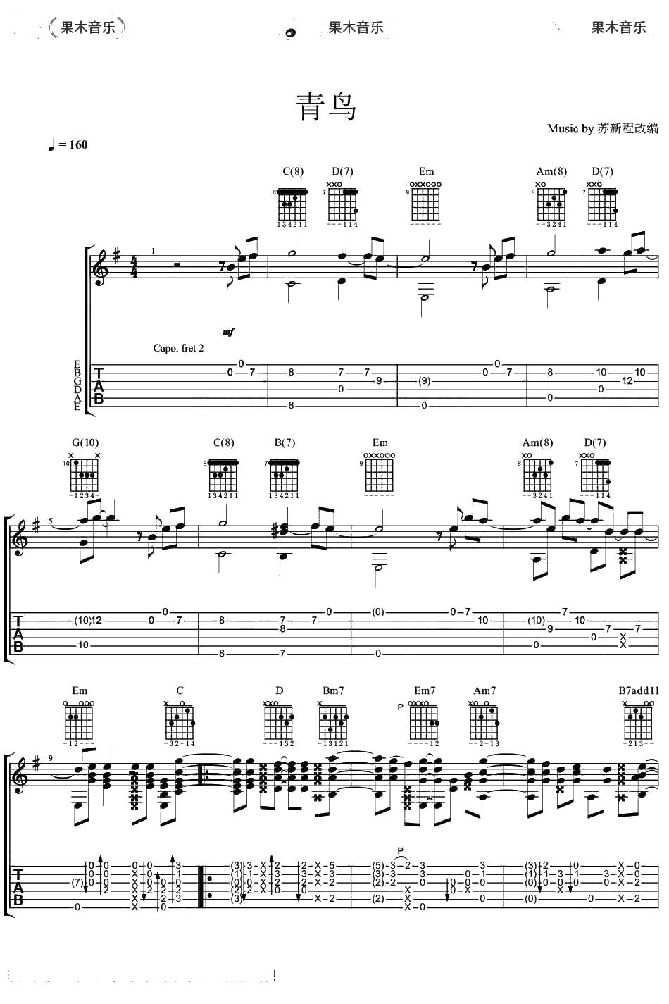 《青鸟》指弹谱 吉他独奏 火影忍者插曲吉他谱