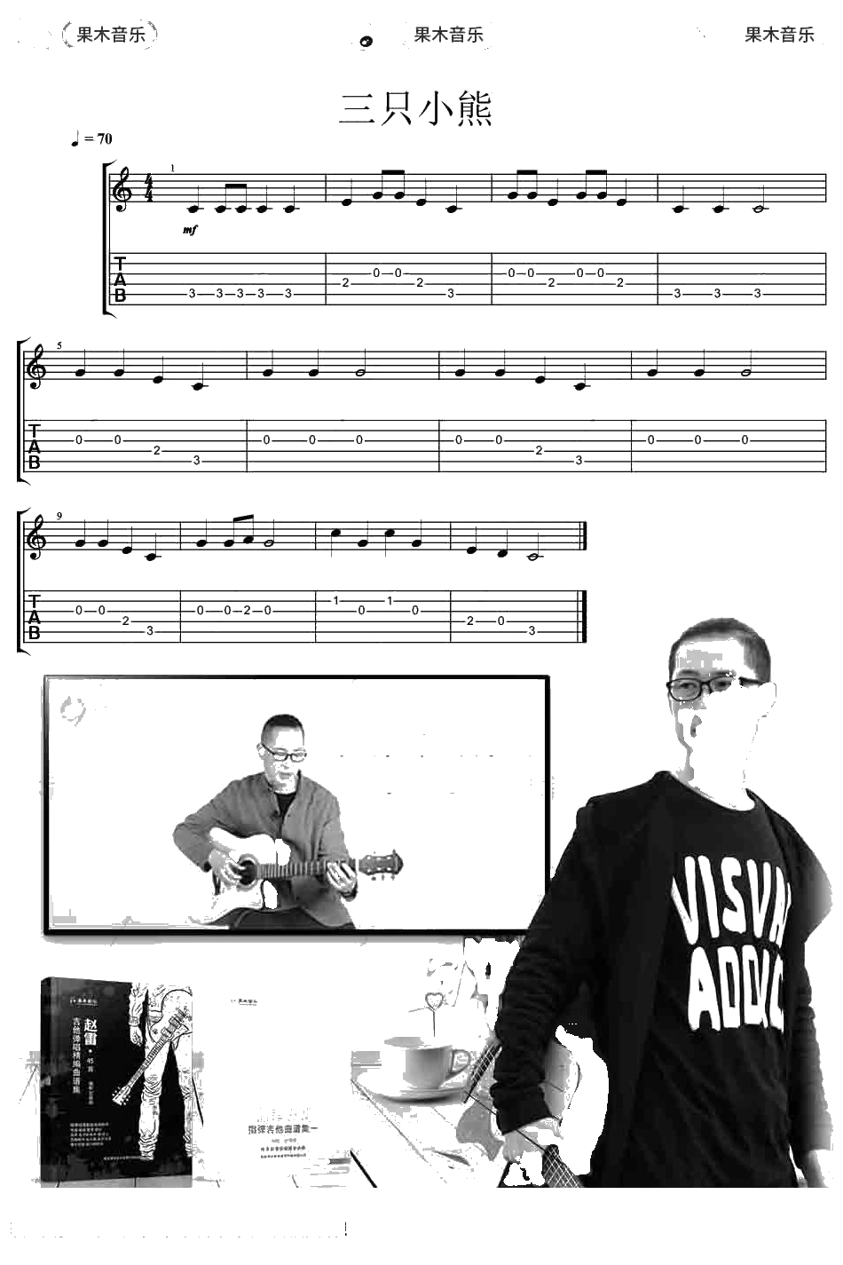 《三只小熊》指弹吉他入门曲谱吉他谱