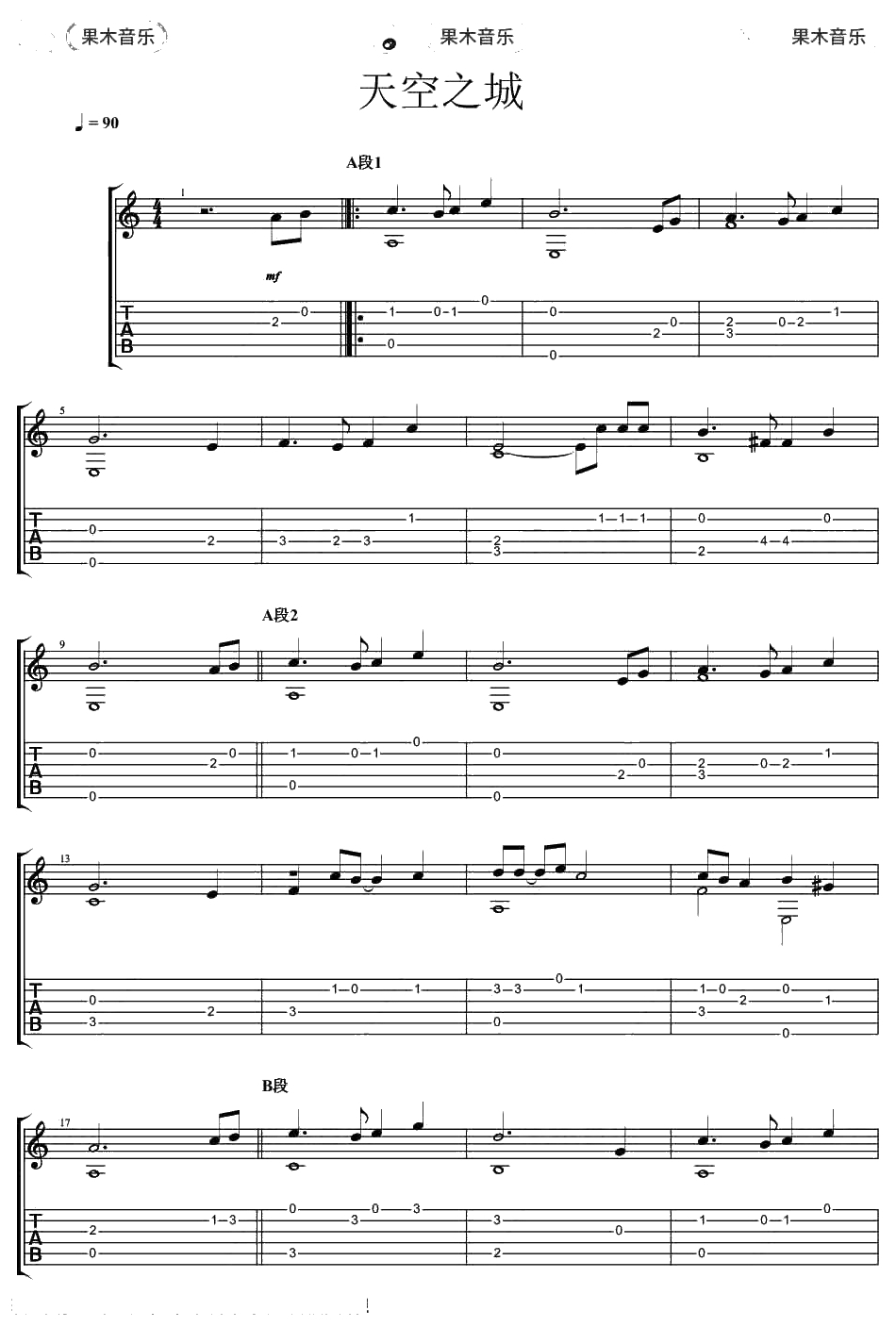 天空之城指弹谱 a小调 指弹吉他入门曲谱