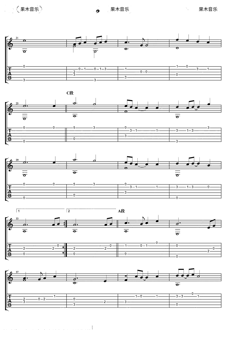 天空之城指弹谱 a小调 指弹吉他入门曲谱吉他谱