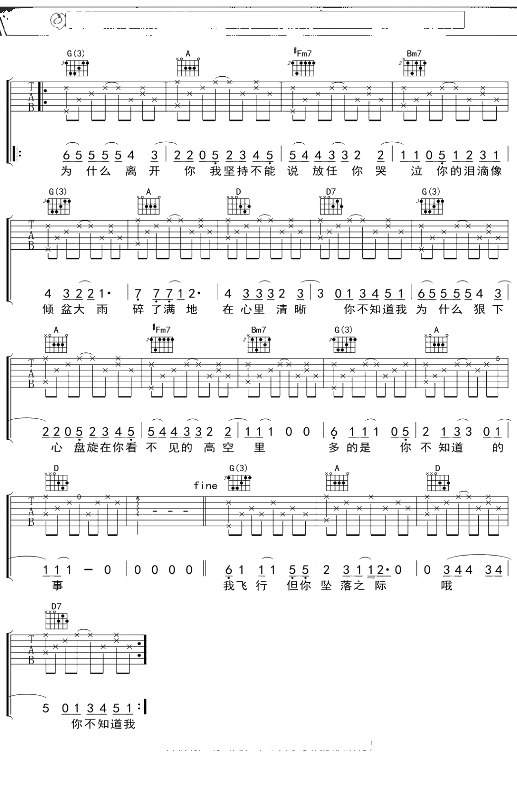 王力宏《你不知道的事》吉他谱 弹唱六线谱吉他谱