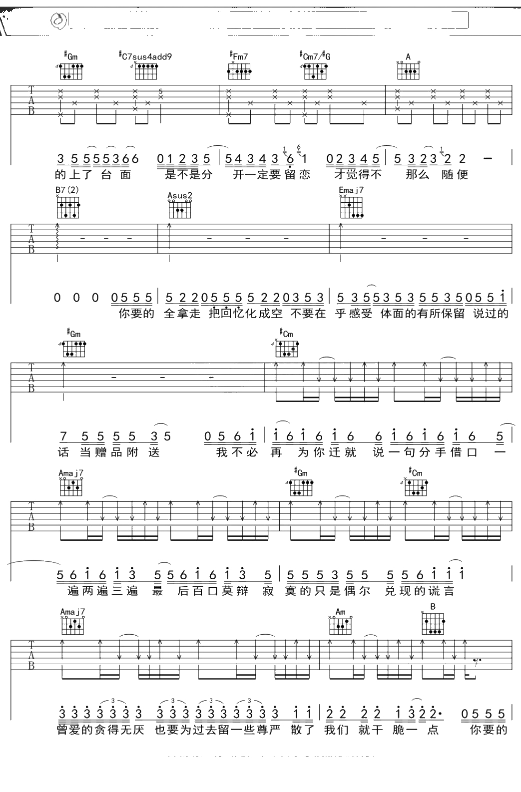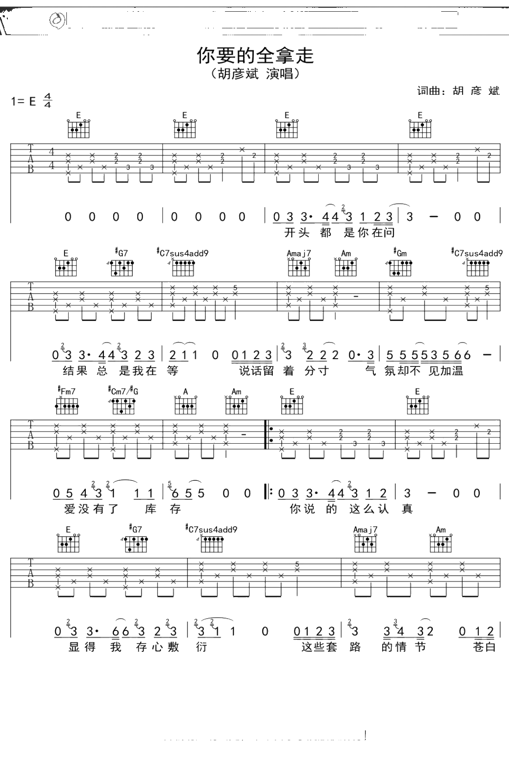 胡彦斌《你要的全拿走》吉他谱 弹唱六线谱