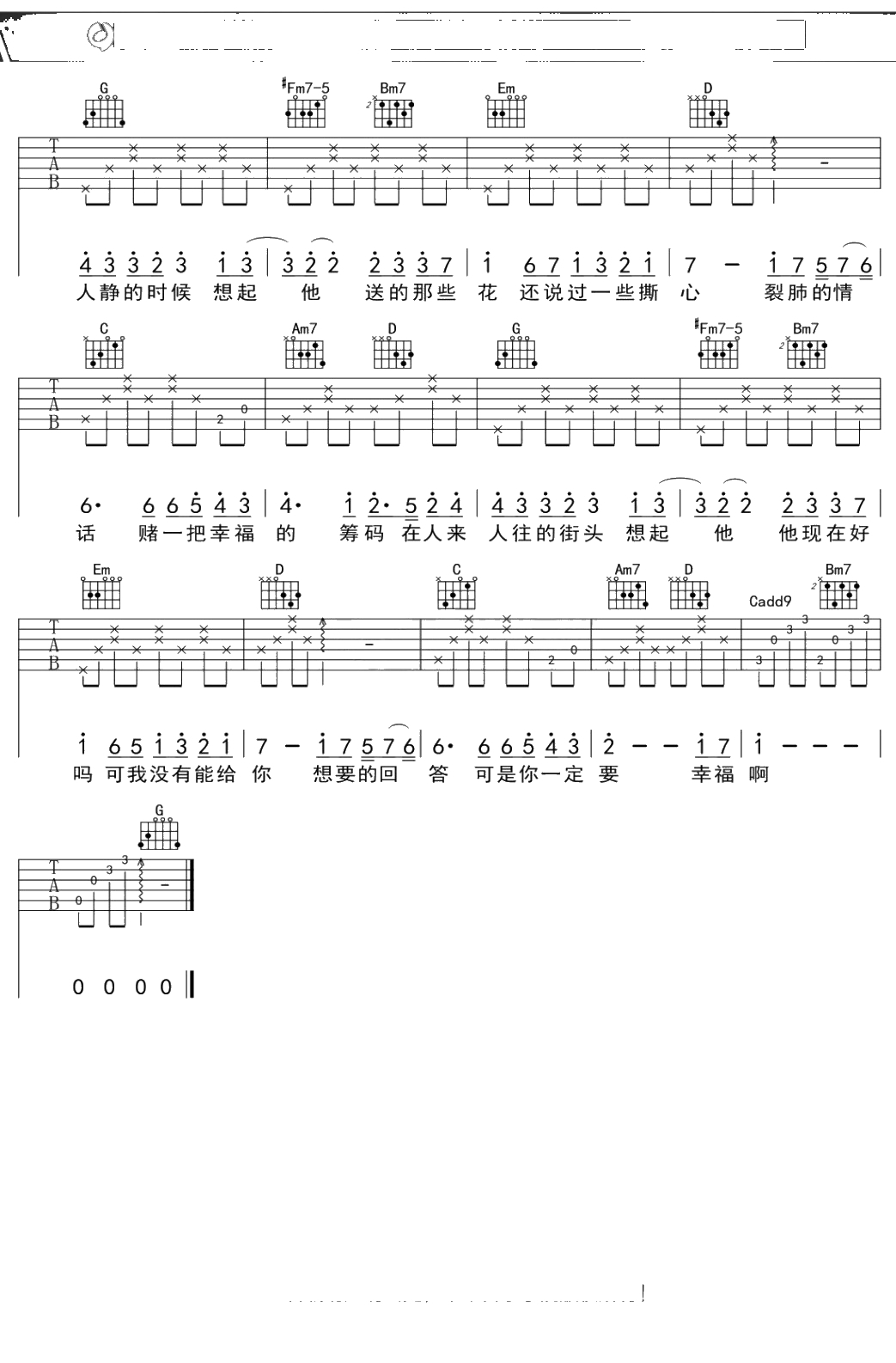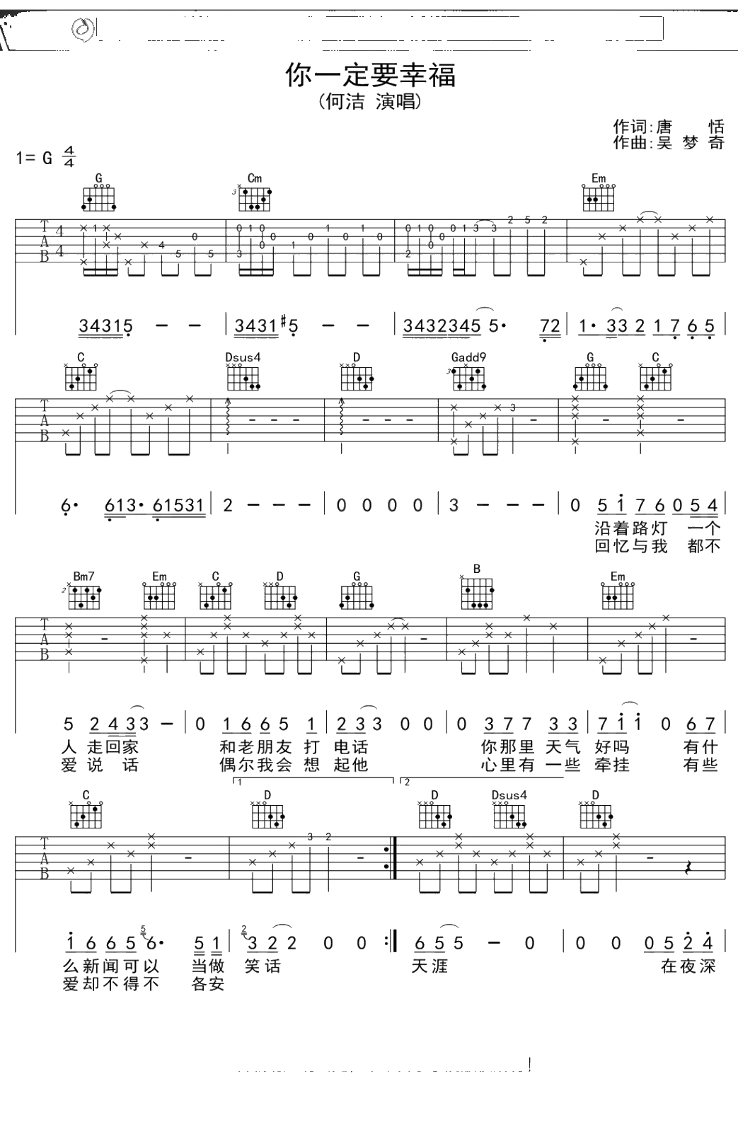 何洁《你一定要幸福》吉他谱 弹唱六线谱