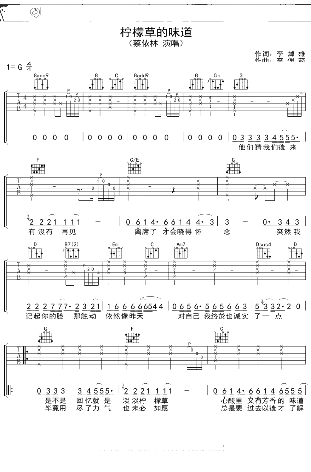 蔡依林《柠檬草的味道》吉他谱 弹唱六线谱吉他谱