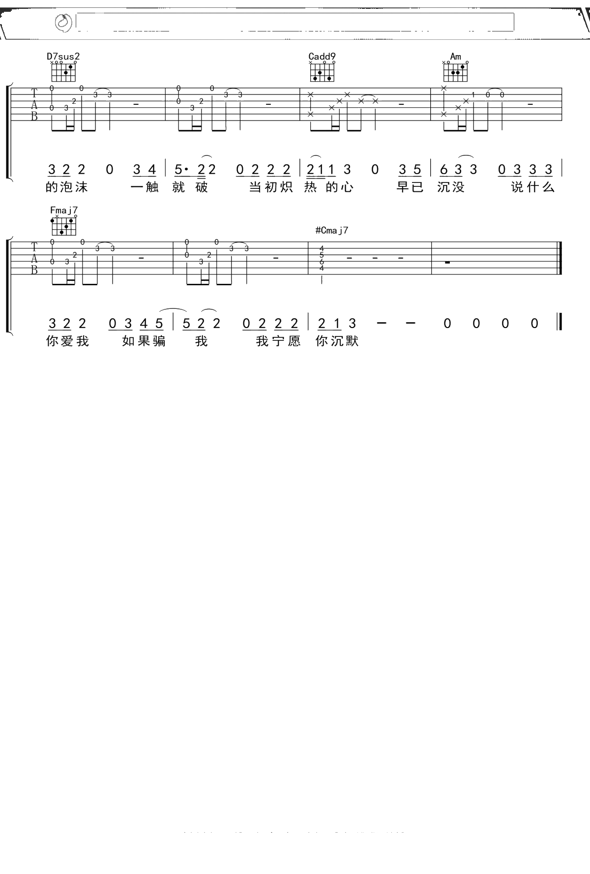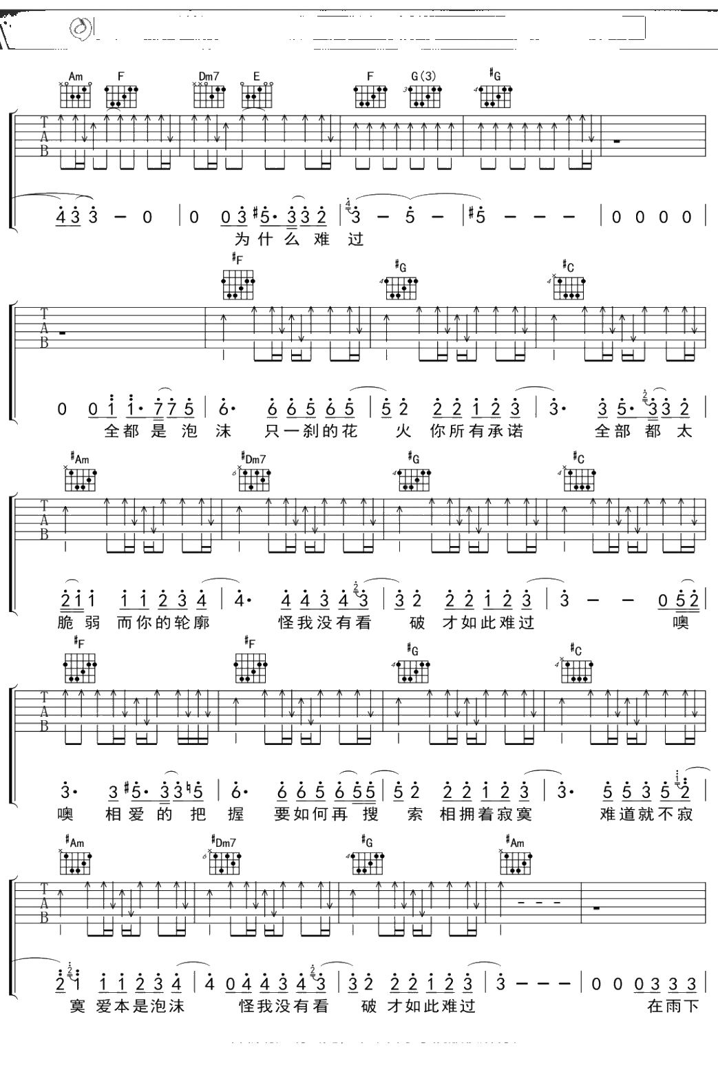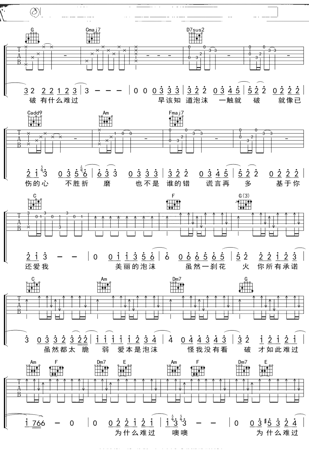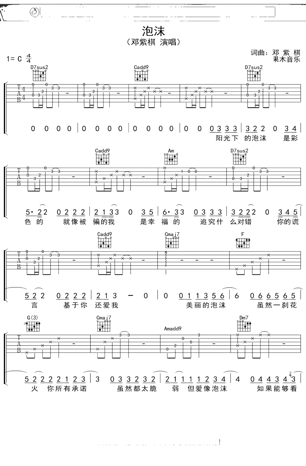 邓紫棋《泡沫》吉他谱 弹唱六线谱