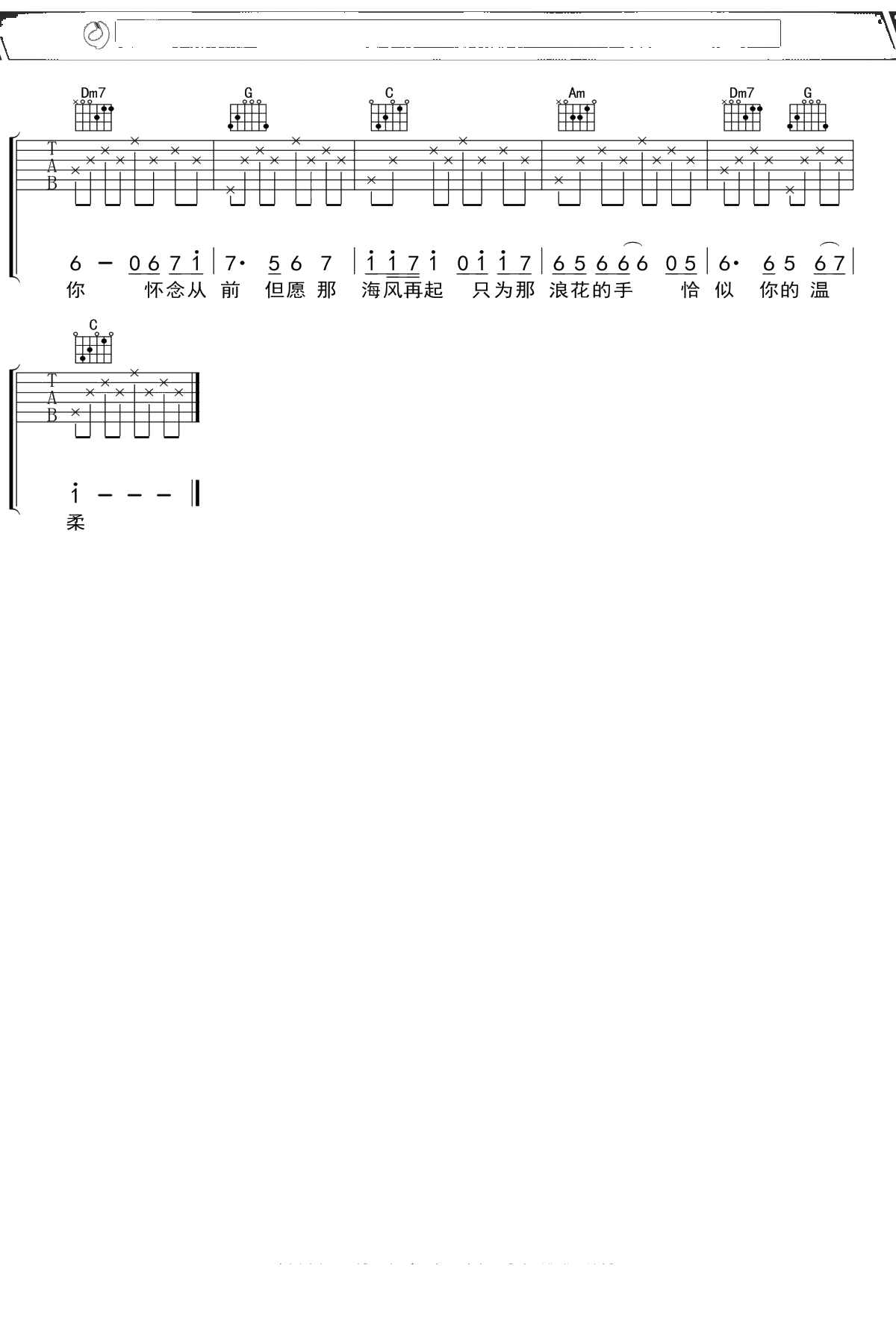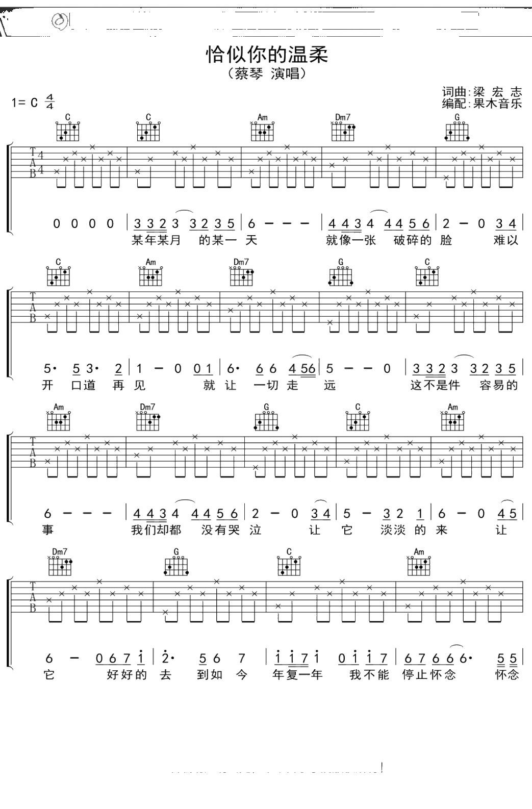 蔡琴《恰似你的温柔》吉他谱 弹唱六线谱吉他谱