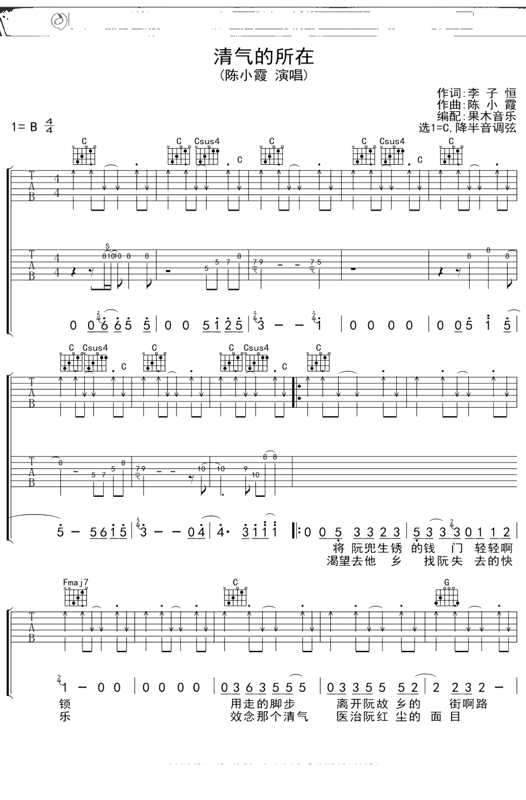 陈小霞《清气的所在》吉他谱 弹唱六线谱