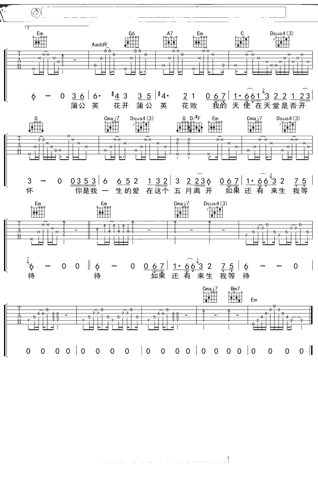 川子《去天堂的孩子》吉他谱 弹唱六线谱