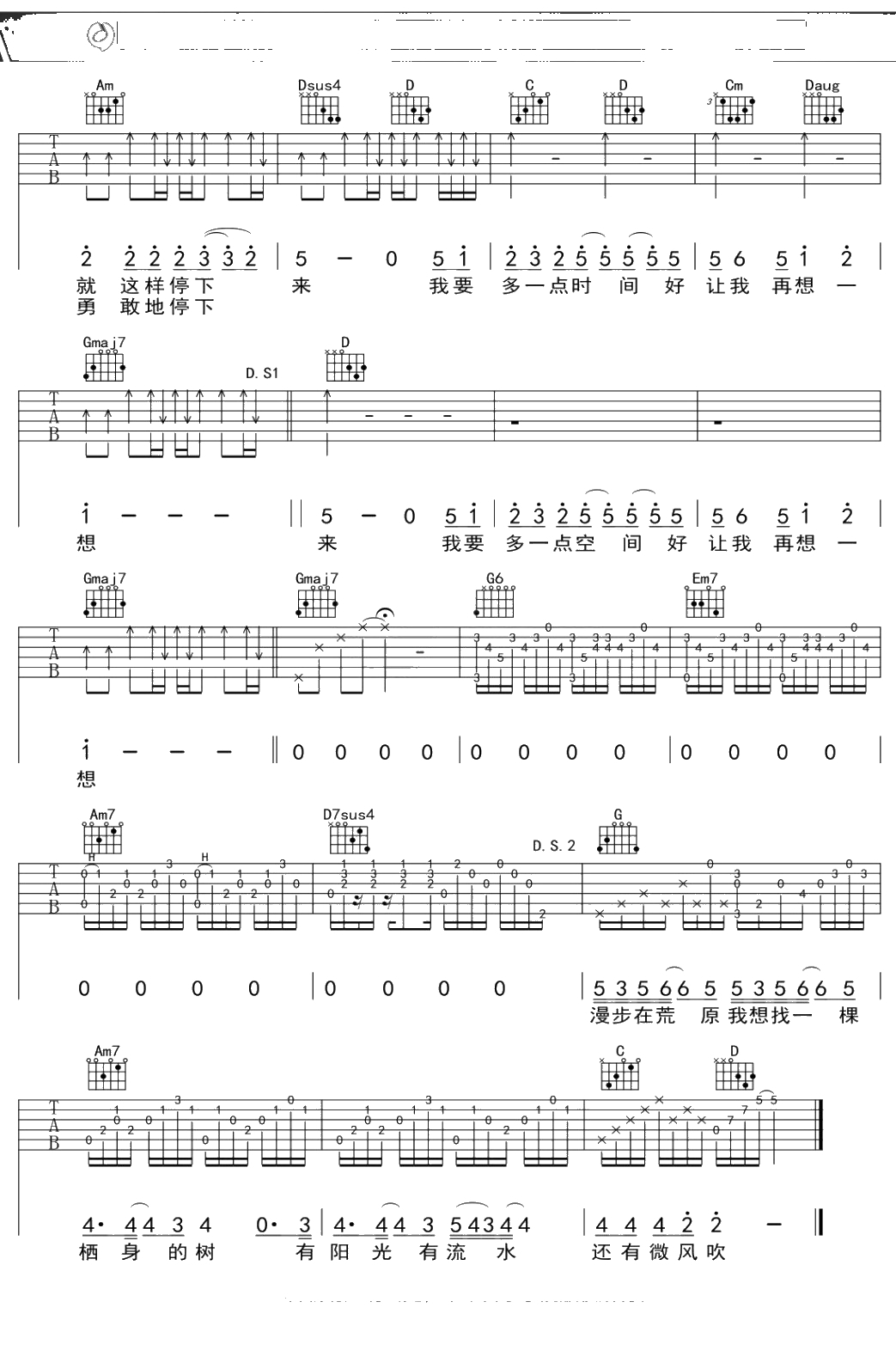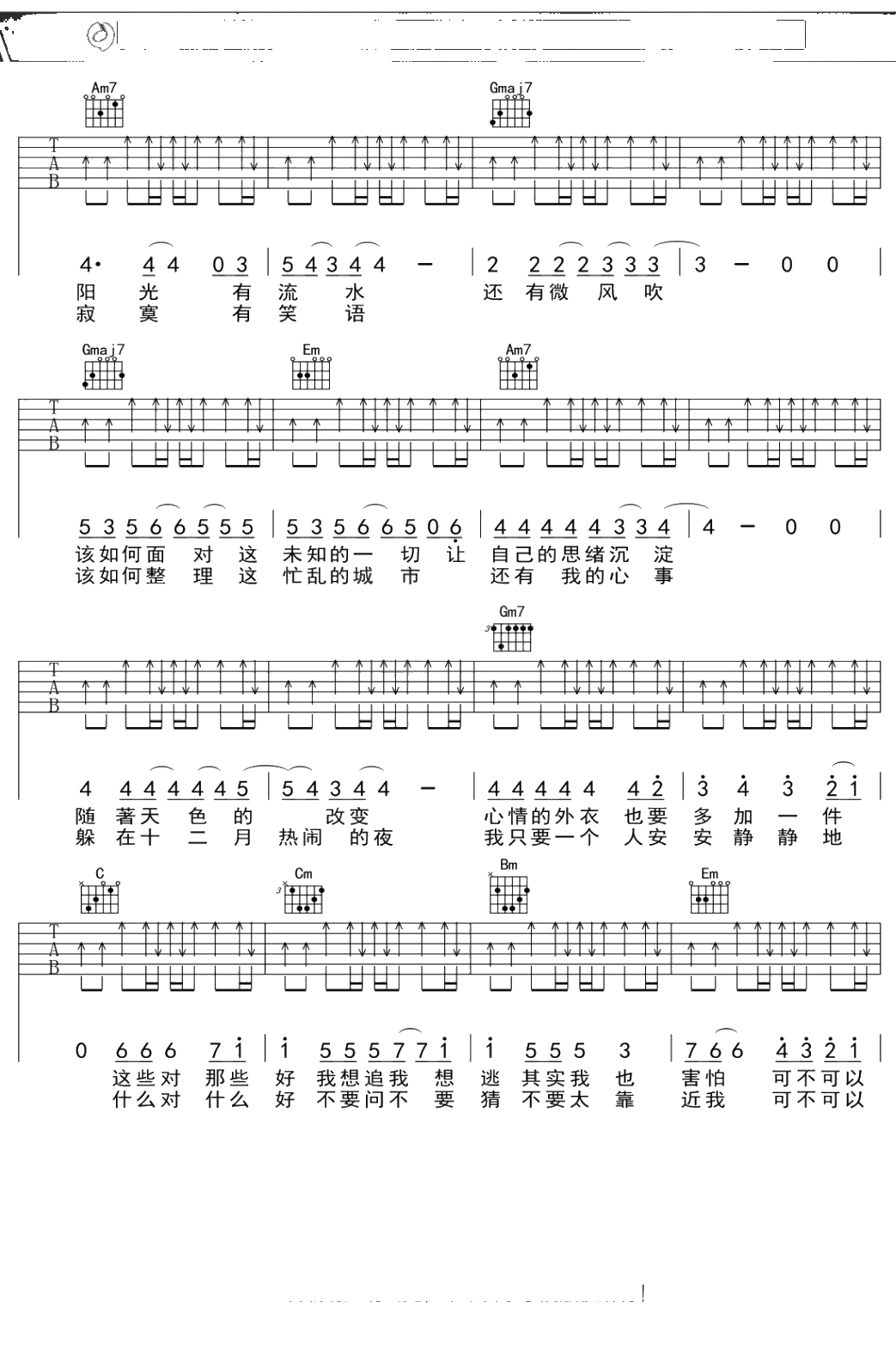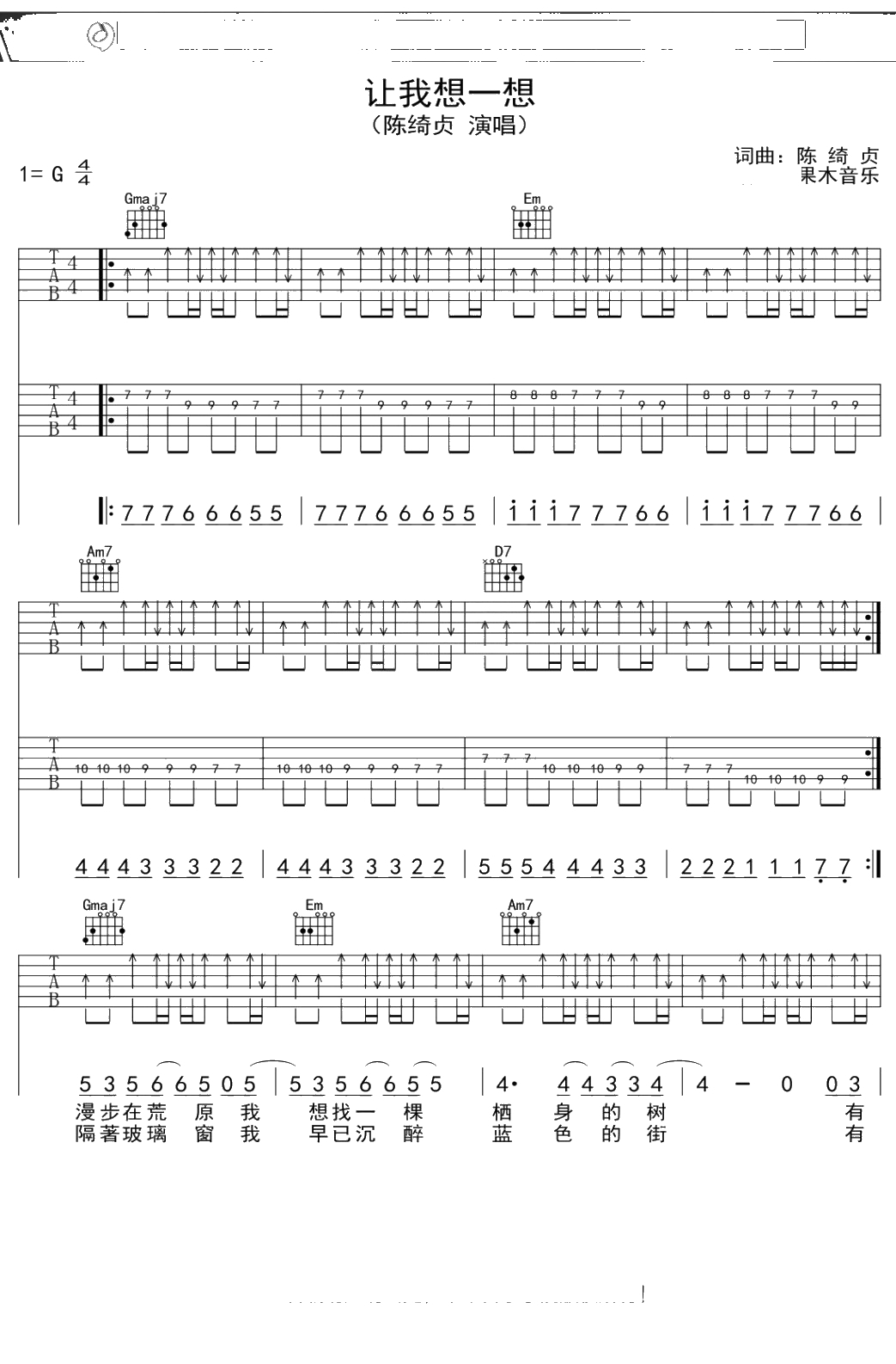 陈绮贞《让我想一想》吉他谱 弹唱六线谱吉他谱