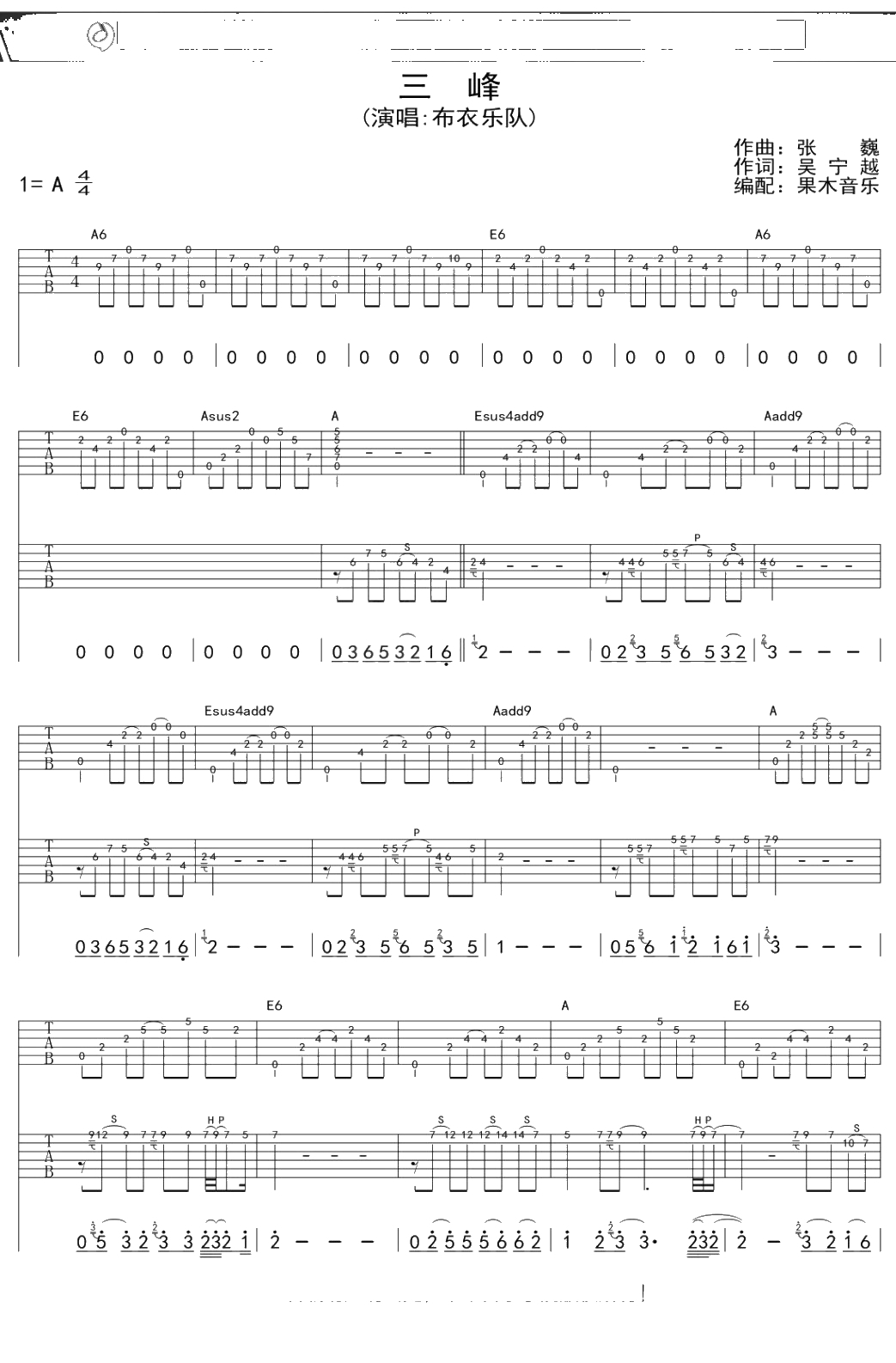 布衣乐队《三峰》吉他谱 弹唱六线谱