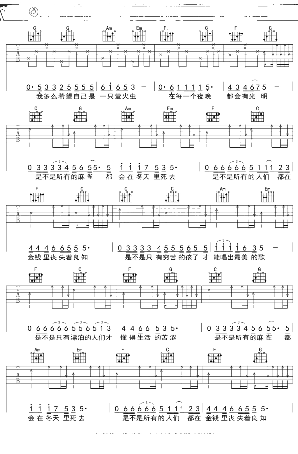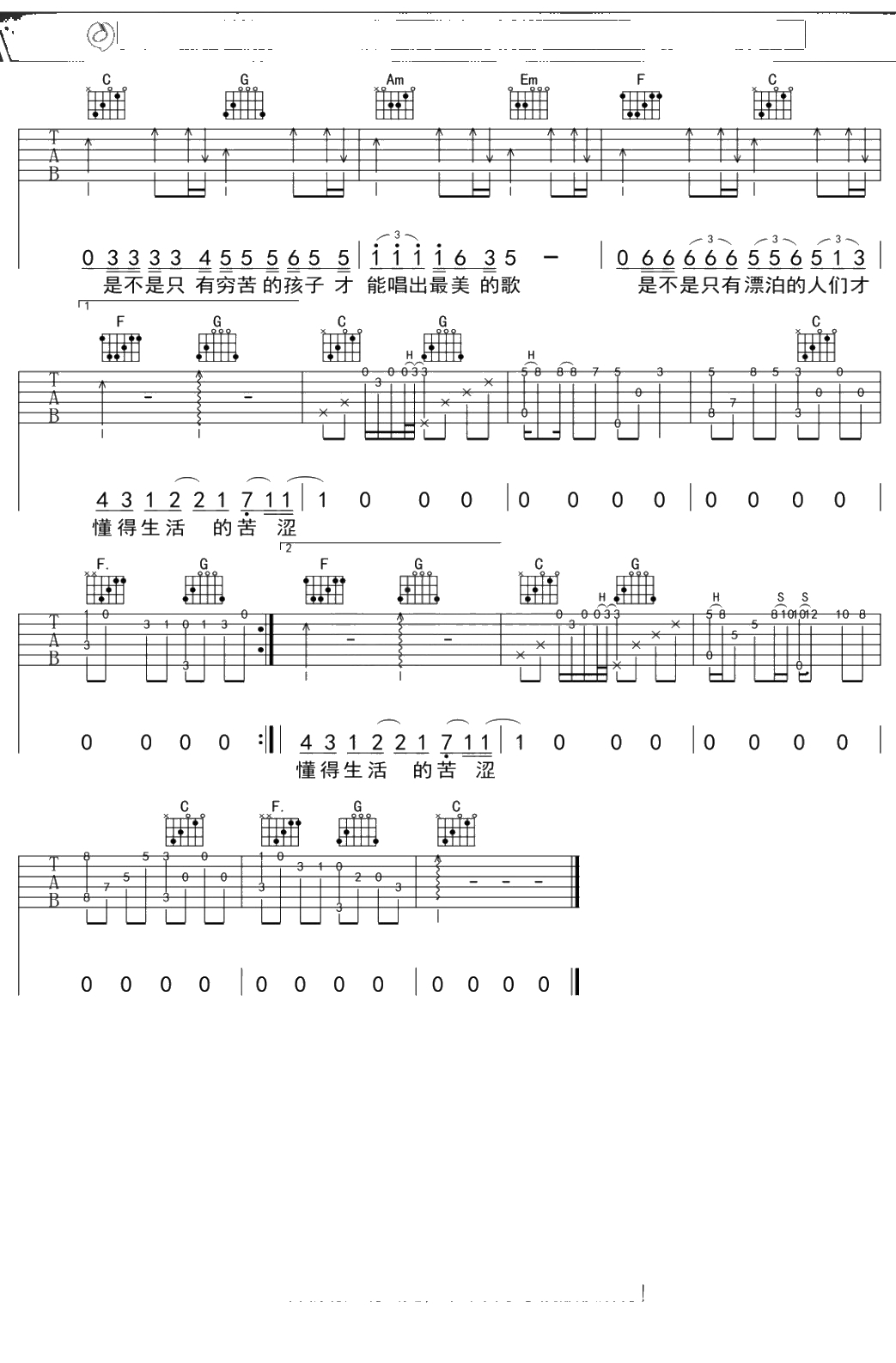 胡晓鸣《涩》吉他谱 弹唱六线谱
