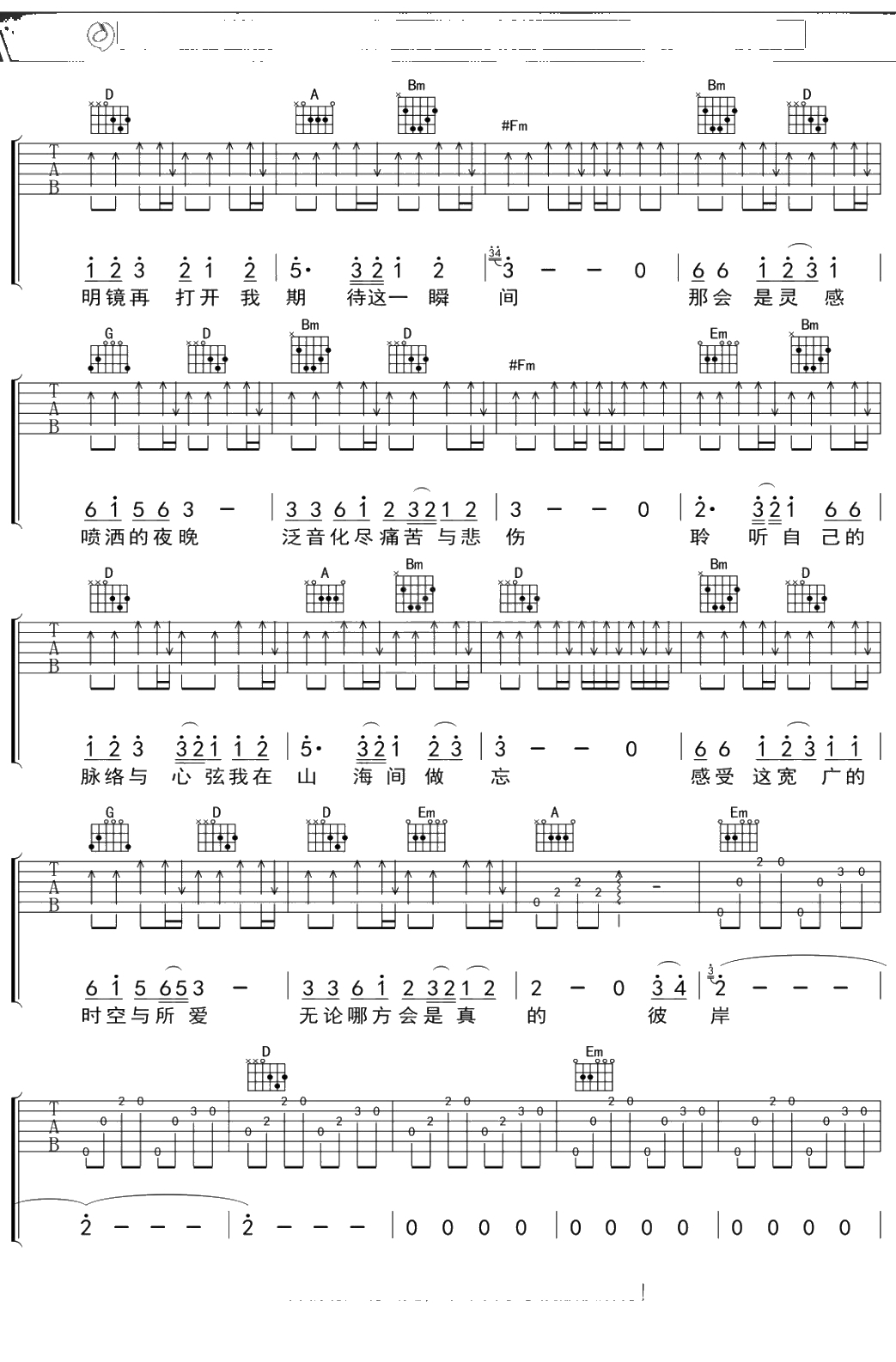春秋乐队《山海间》吉他谱 弹唱六线谱