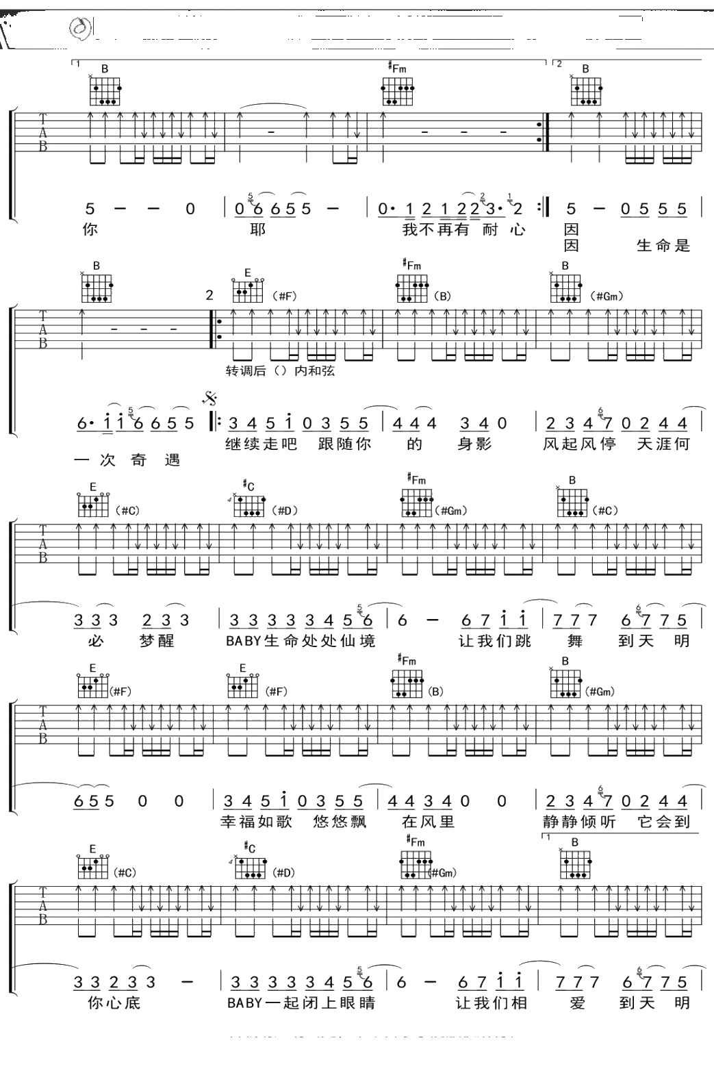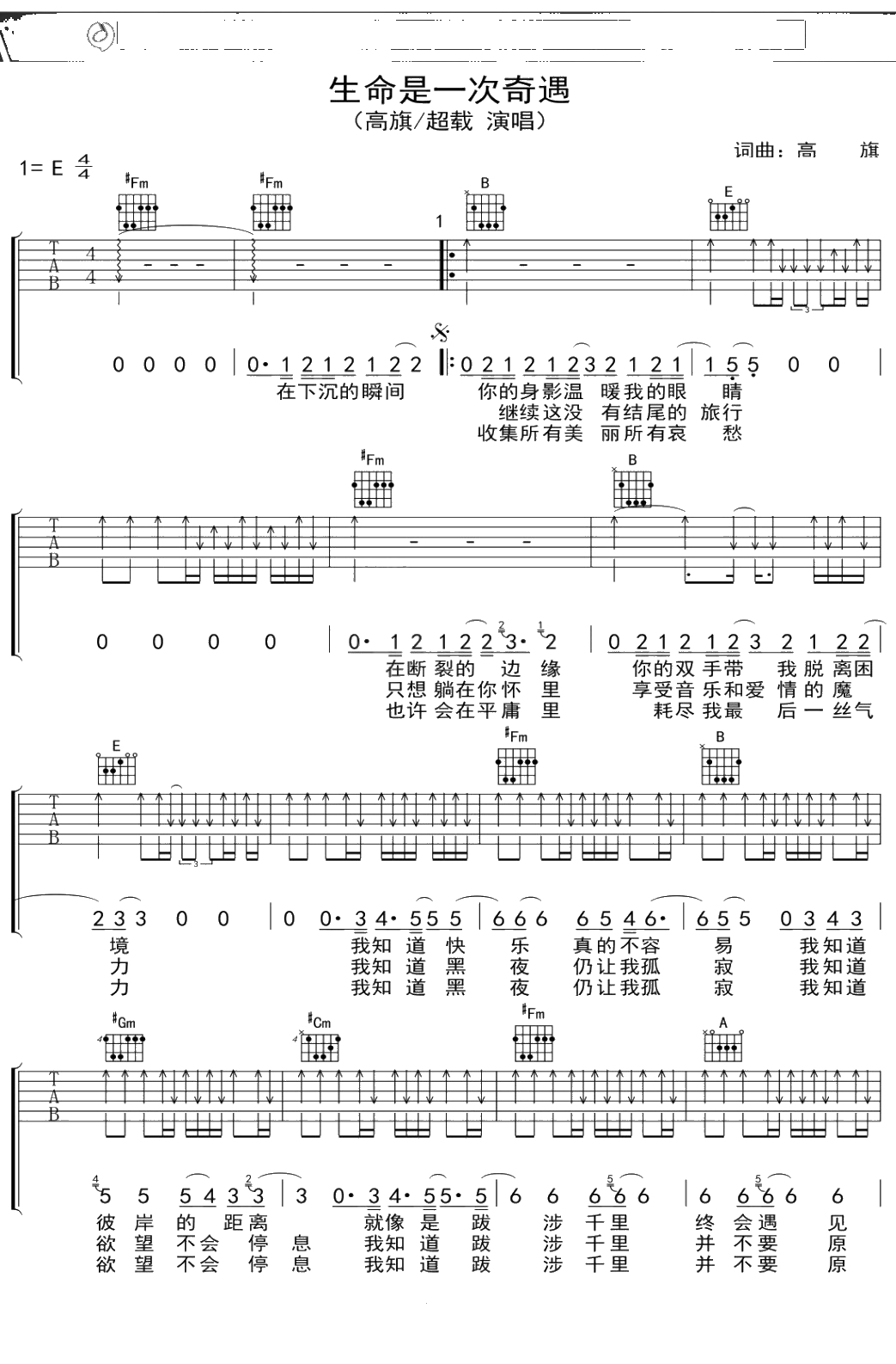 超载乐队《生命是一次奇遇》吉他谱 弹唱六线谱
