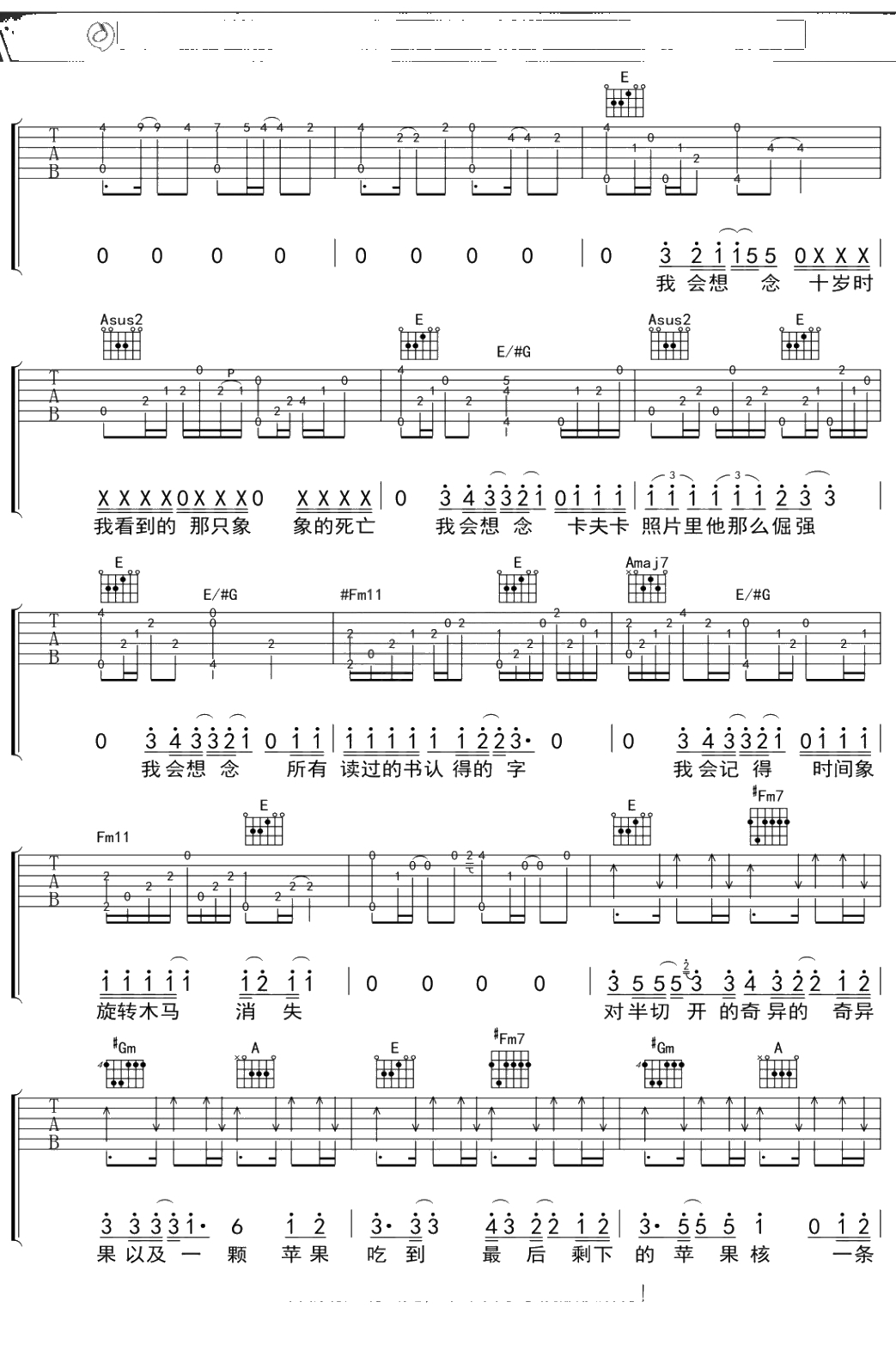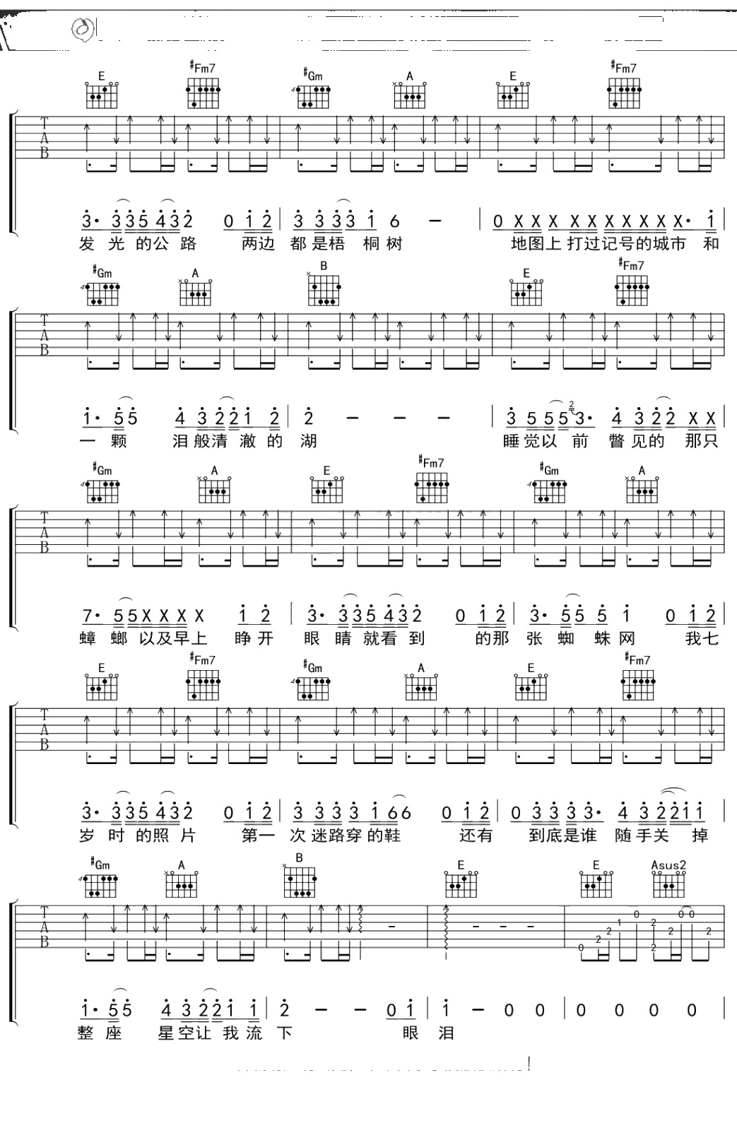 陈绮贞《失眠前我记得的47件事》吉他谱 弹唱六线谱吉他谱