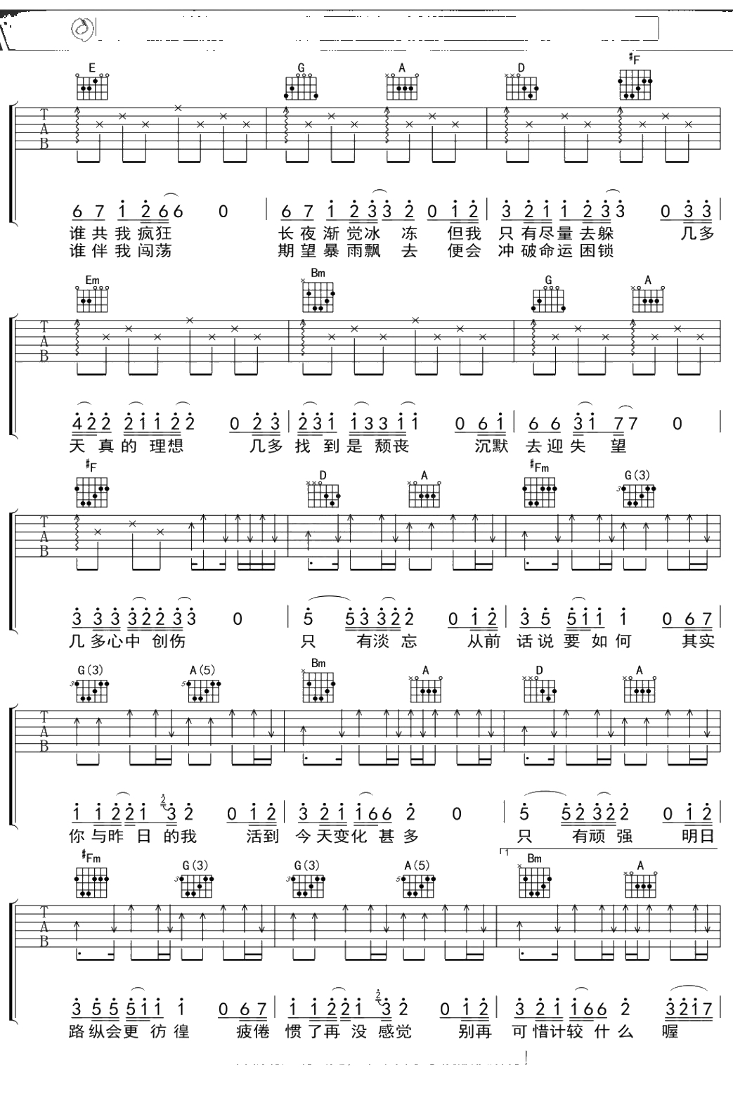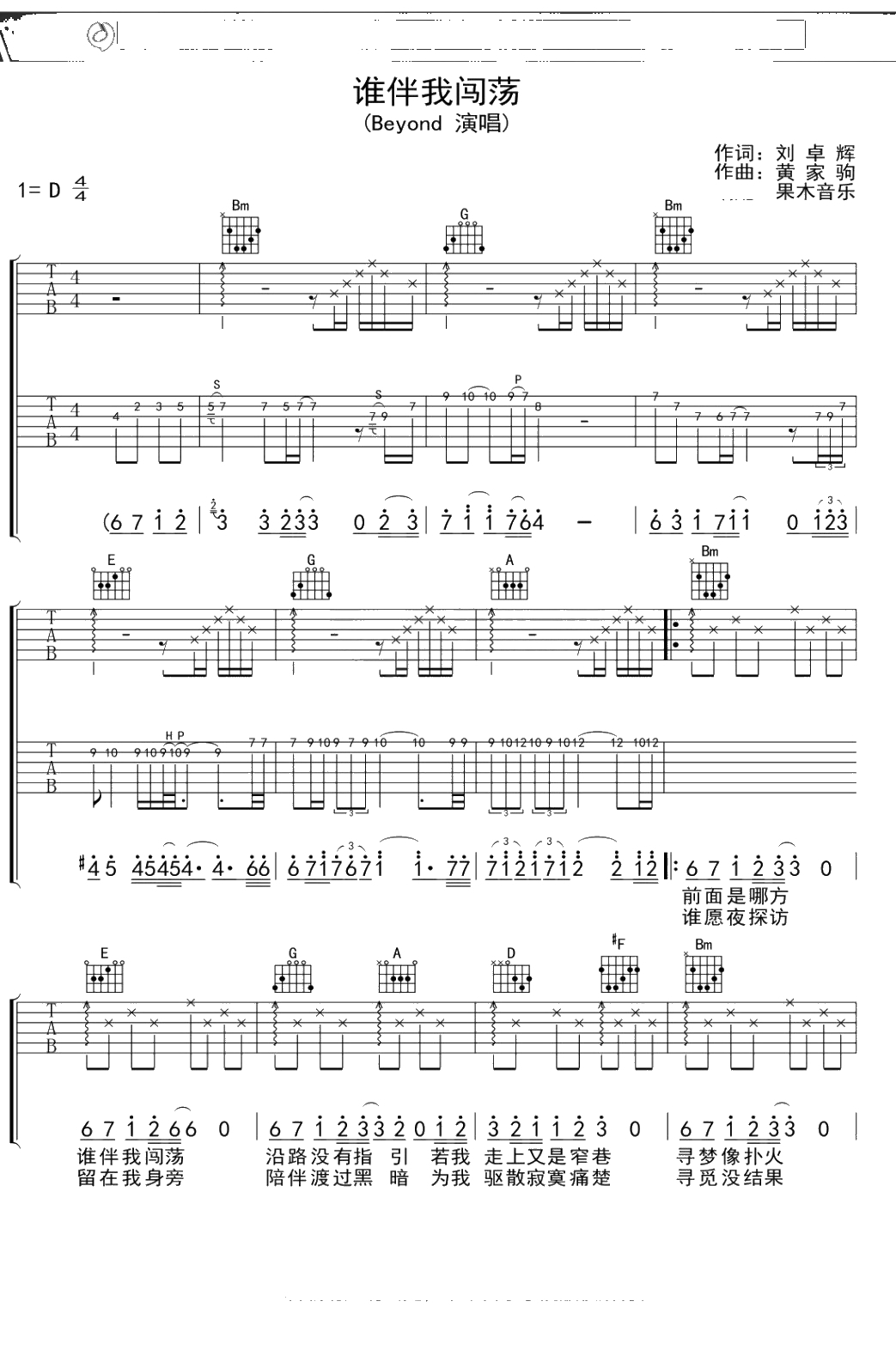 beyond《谁伴我闯荡》双吉他谱 弹唱六线谱