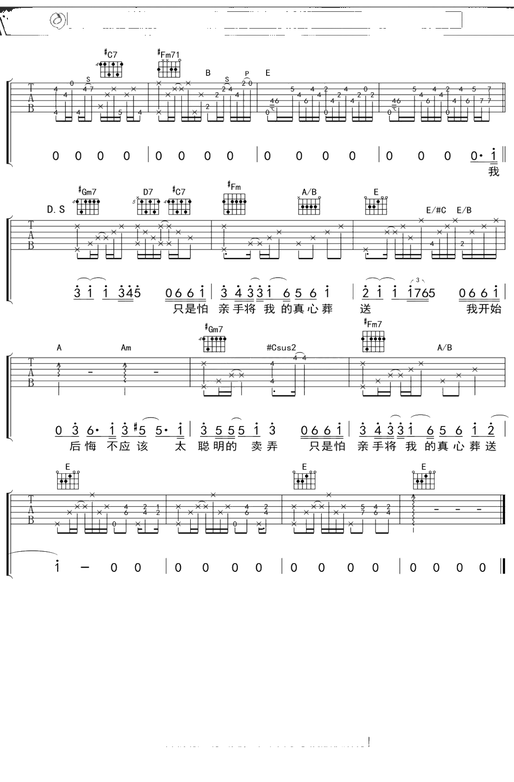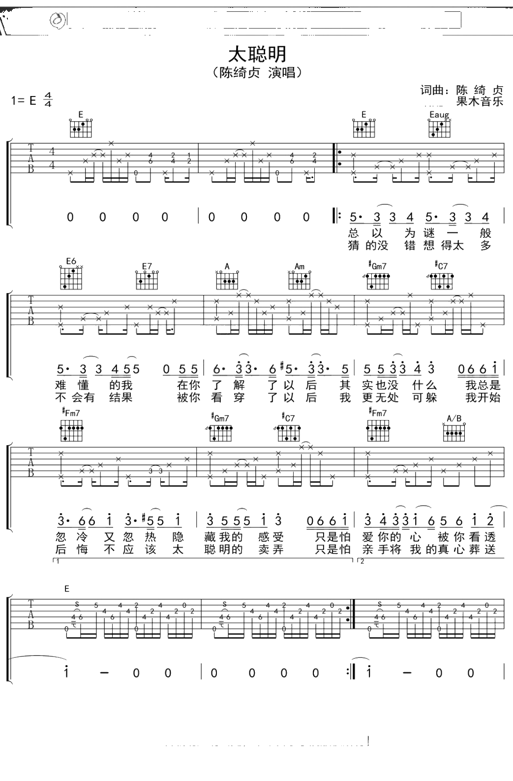 陈绮贞《太聪明》吉他谱 弹唱六线谱