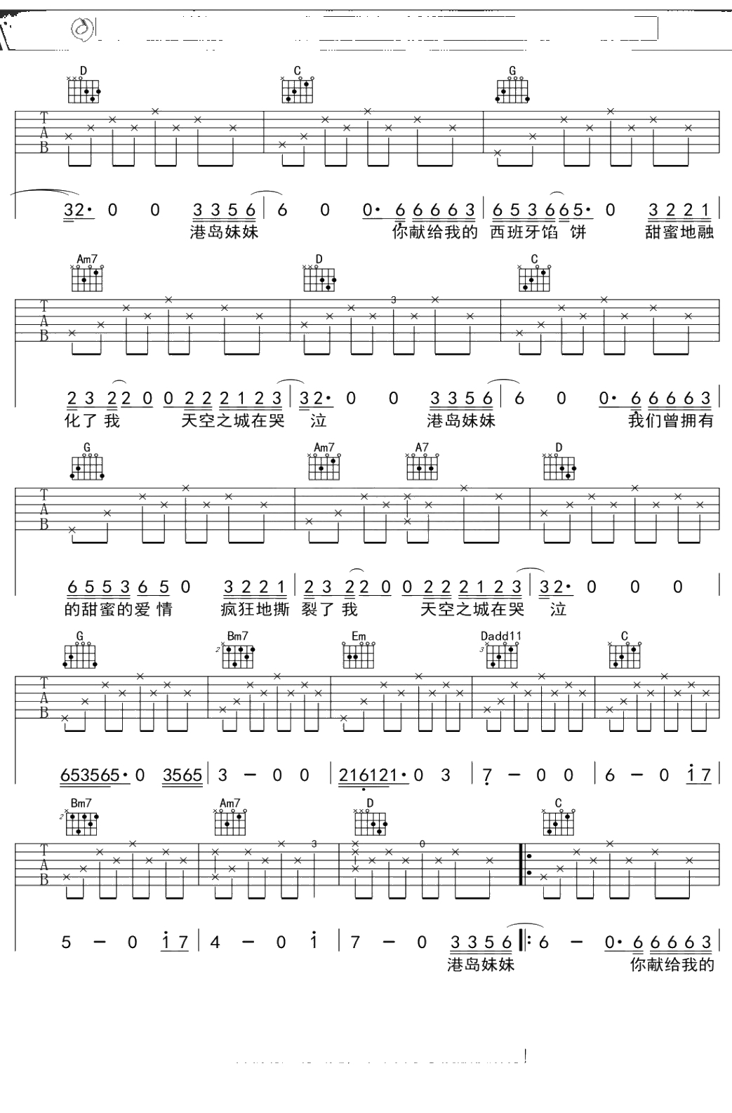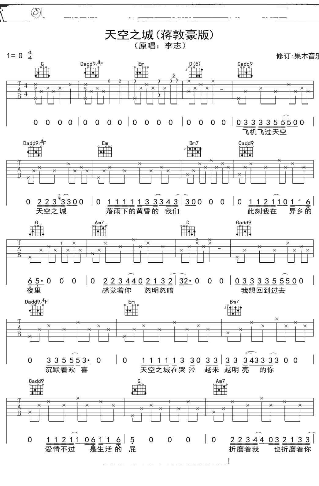 蒋敦豪《天空之城》吉他谱 弹唱六线谱吉他谱