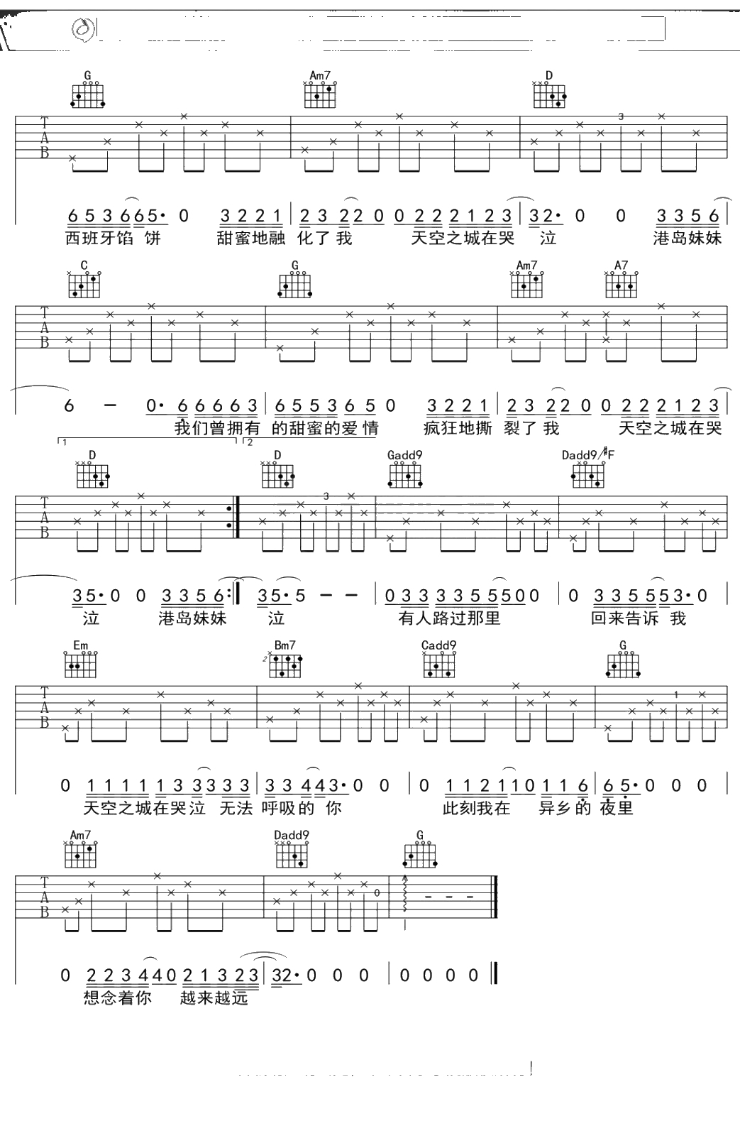 蒋敦豪《天空之城》吉他谱 弹唱六线谱